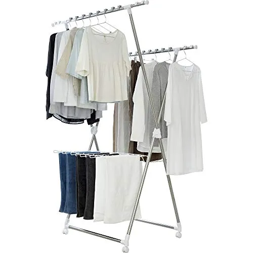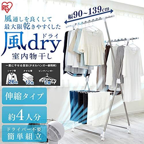 アイリスオーヤマ 約4人分が干せる洗濯物干し 段違いに干せるので風が通りやすく乾きやすいコンパクトな多機能物干し 幅90~139×奥行80×高さ183cm KDM-8514X★m
