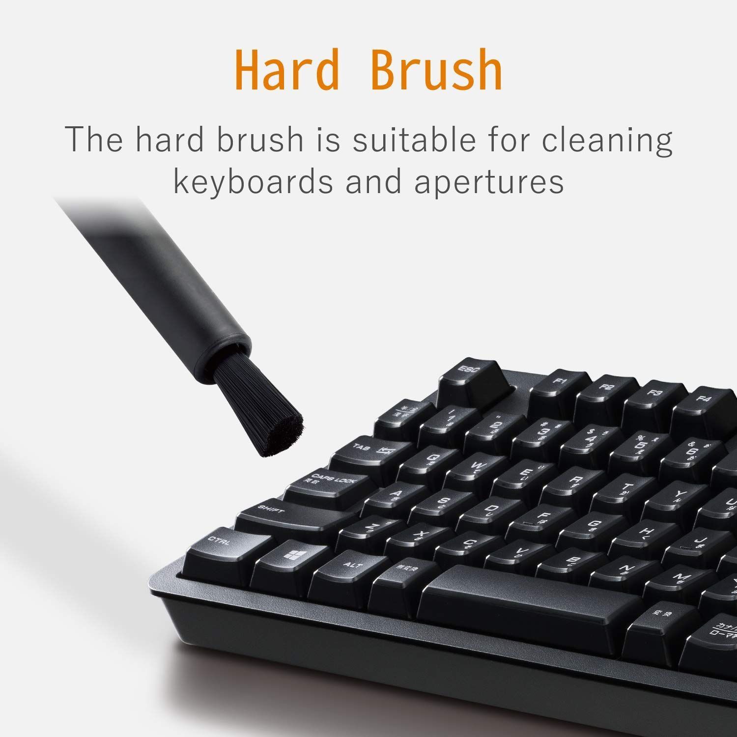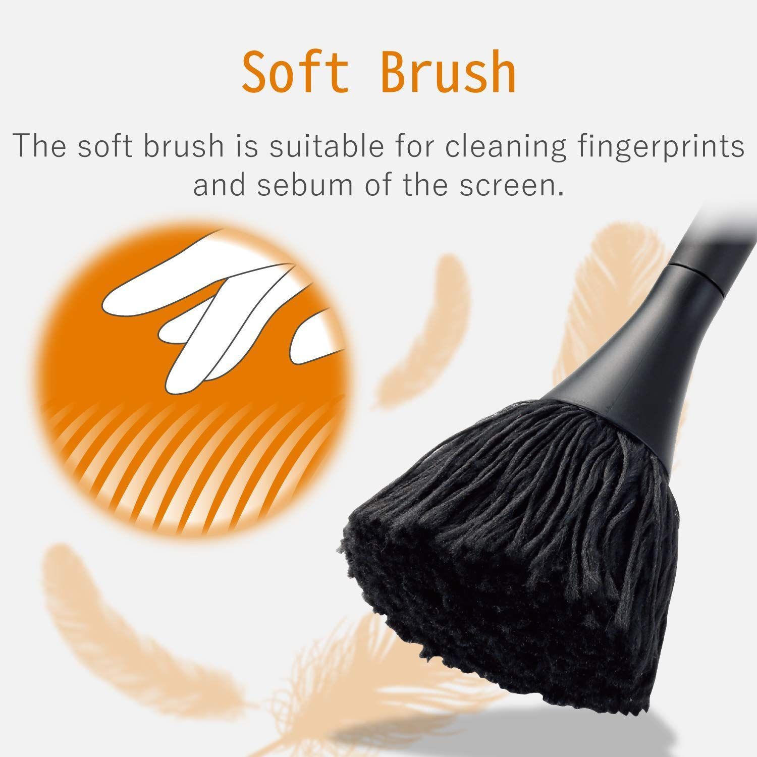 ■ 機器本体を傷つけにくい柔らかい毛とキーボードなどの細かな隙間のお掃除に便利な硬い毛が付いています。