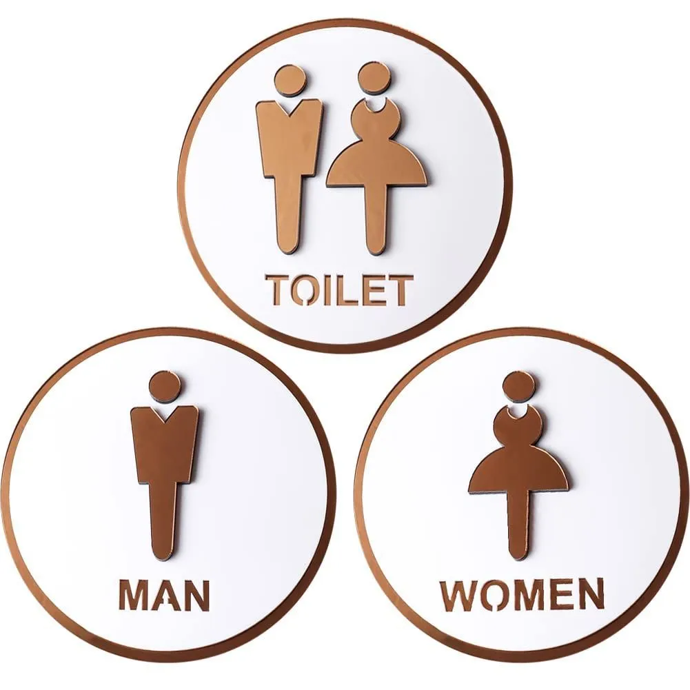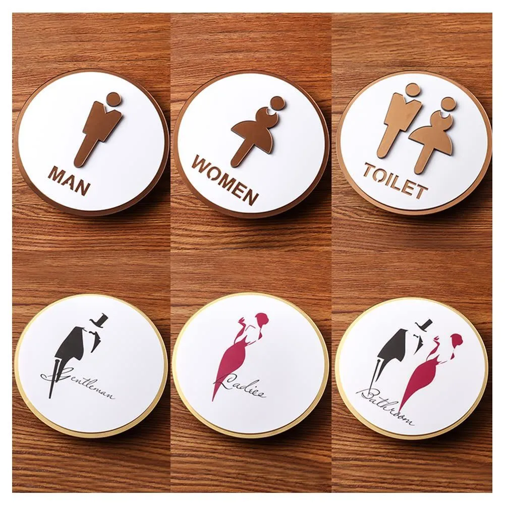 スタイル:トイレのサインプレートセット、素材:厚いアクリル板。プロセス:UV印刷。スタイル・サイズ(直径):立体3枚・15cm