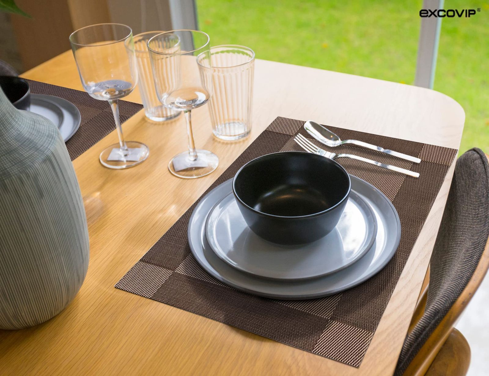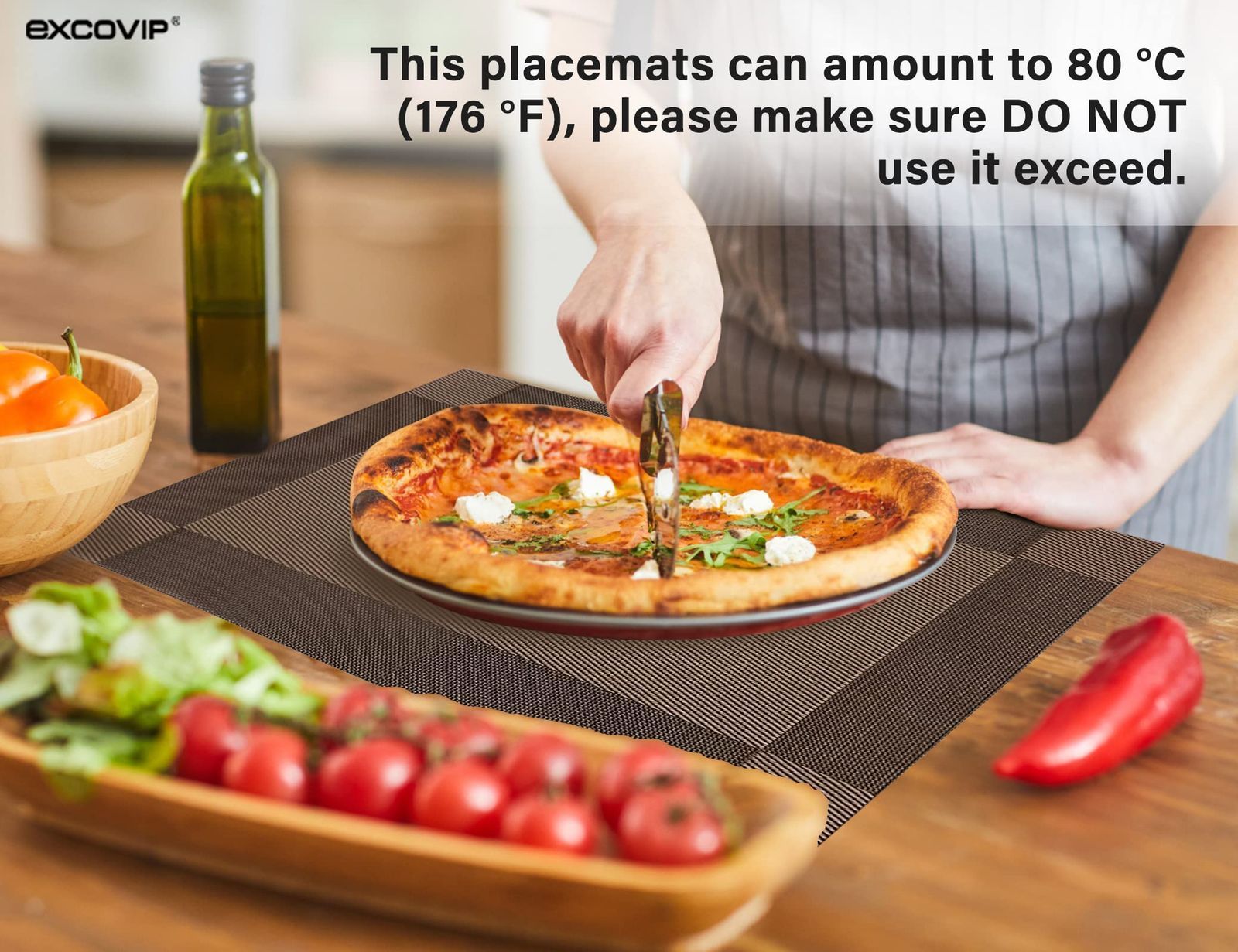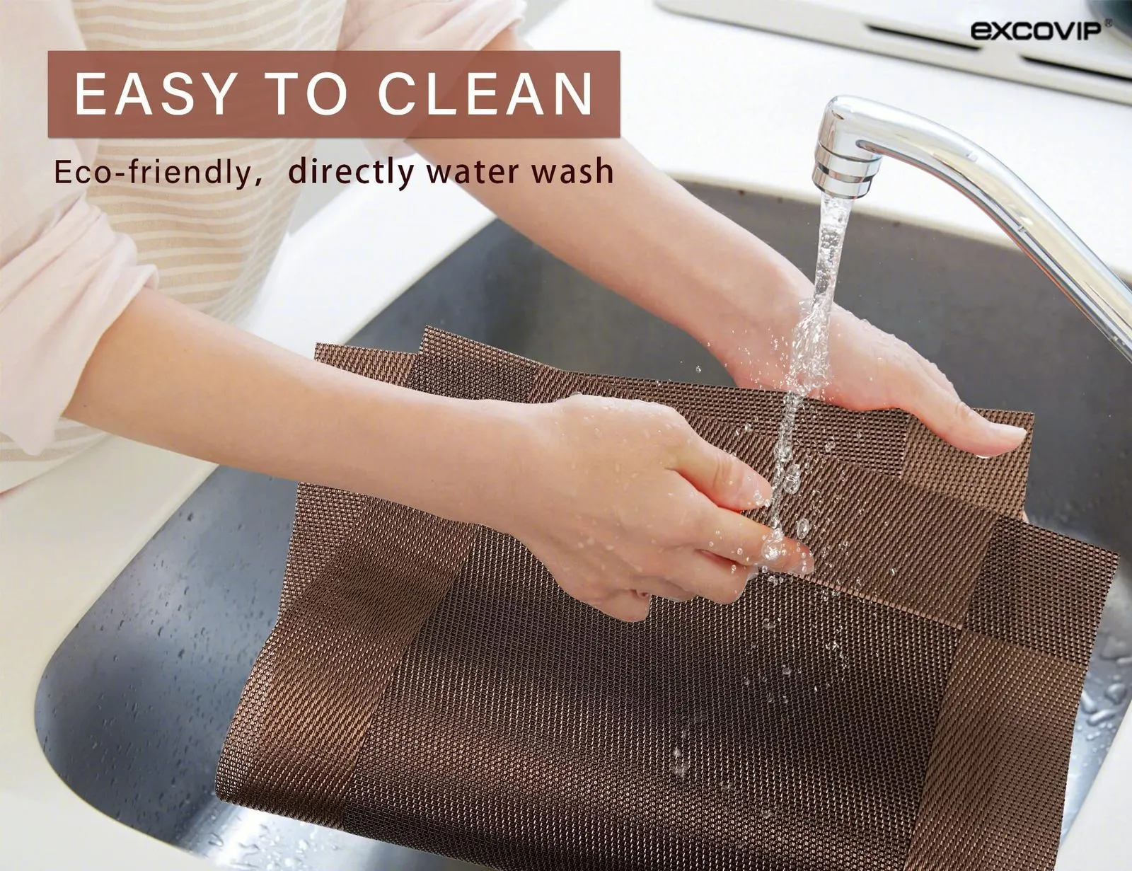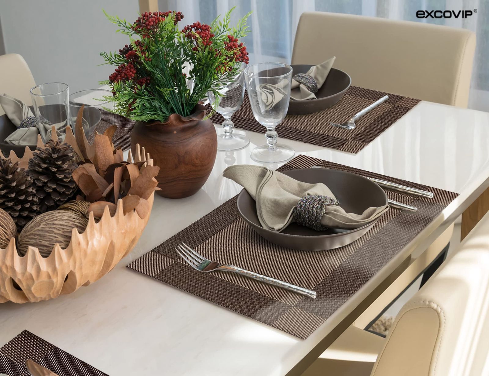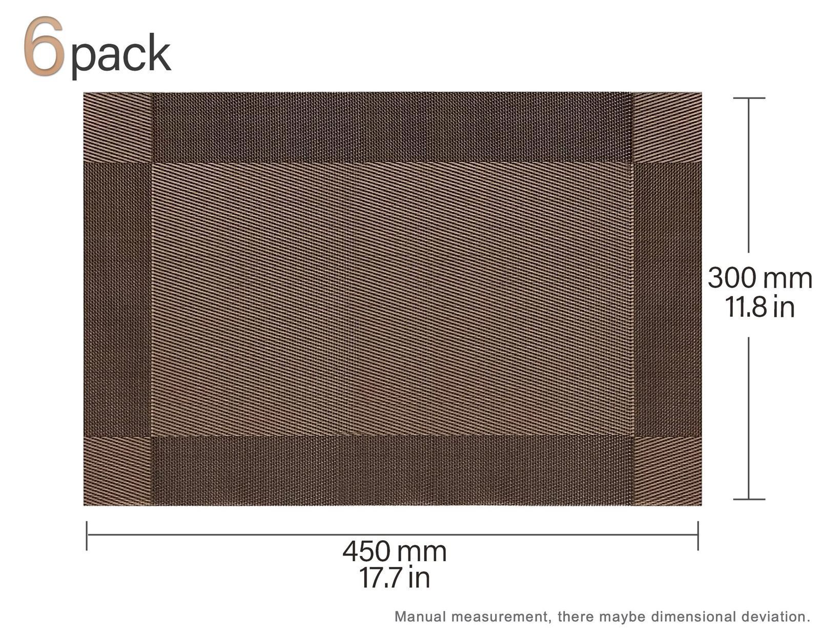 excovipランチョンマット 北欧スタイル 選択 耐油性 滑り止めの絶縁 洗える 長方形 織り 模造リネン PVCランチョンマット×6枚 家庭用(ブラウン)