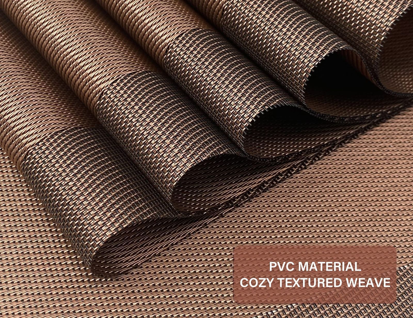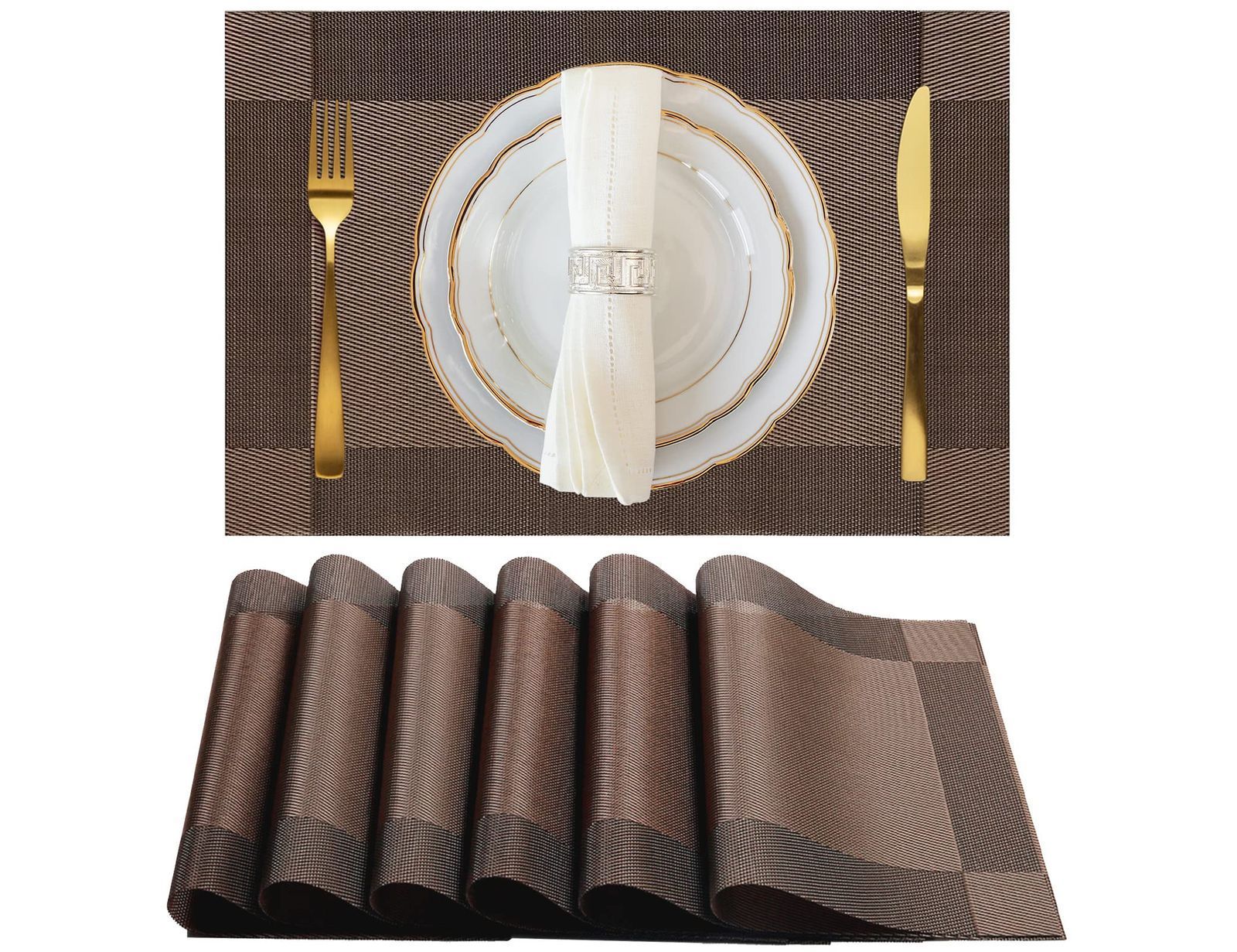 【迅速発送】excovipランチョンマット 北欧スタイル 選択 耐油性 滑り止めの絶縁 洗える 長方形 織り 模造リネン PVCランチョンマット×6枚 家庭用(ブラウン)