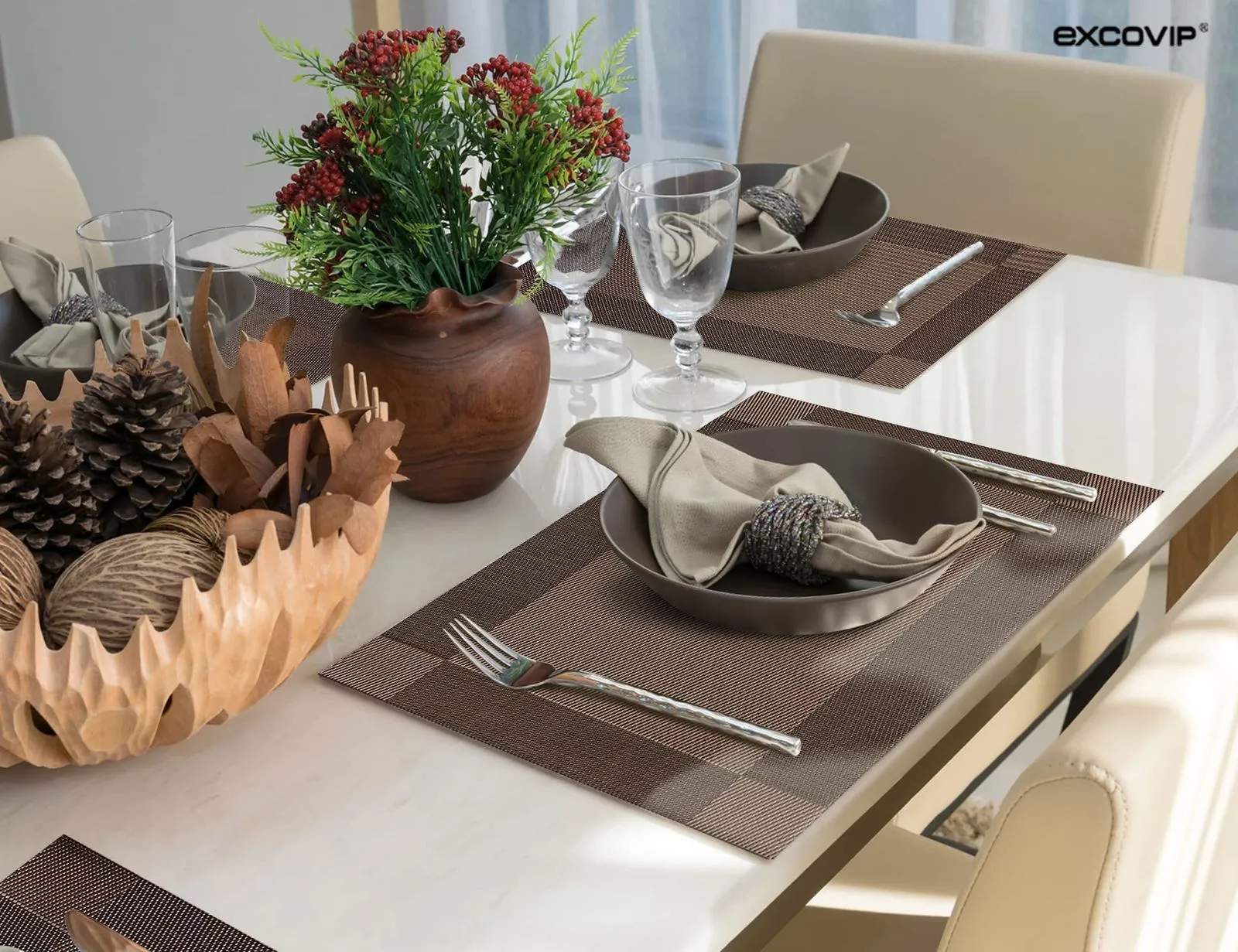 【広く使用されている】普段の食卓はもちろん、キッチン、部屋などの場所で使うことができます、レストランやダイニングにもマッチします。上品な光沢感のある素材が華やかな雰囲気をプラスします。 色 ブラウン 材質 ポリ塩化ビニル サイズ 45*30CM ブランド excovip 行事 記念日