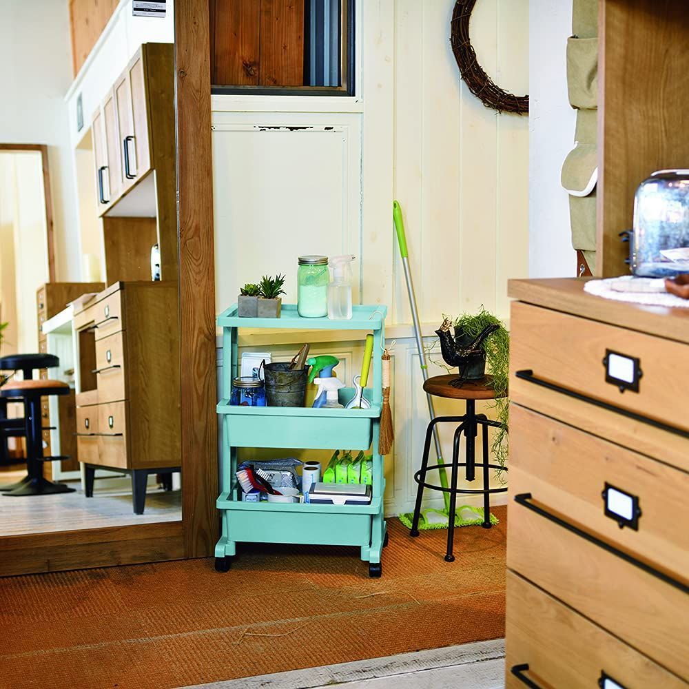 リビング・キッチン・ランドリー・子供部屋・寝室など様々な場所で活躍するキャスター付きワゴン。工具不要の簡単組立式なので、女性でも簡単に組み立てできます。