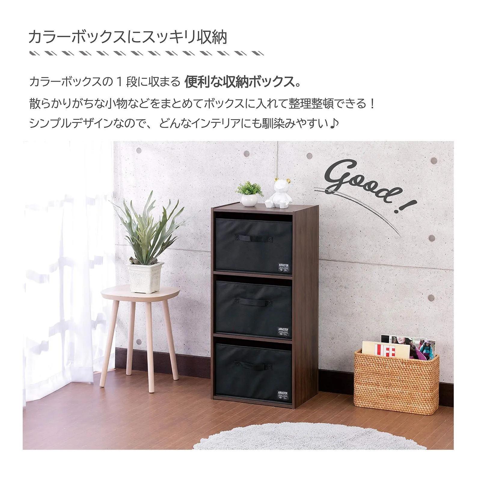【素材】生地:不織布 芯材:紙 小物をすっきり収納出来る!デザインストレージBOX 3個入りです。 カラーボックスにぴったりサイズの収納BOX。出し入れしやすい取っ手付き! 使わない時は折りたたんでコンパクトに収納可能♪ 〇小物をすっきり収納出来る!デザインストレージBOXです。 〇カラーボックスにぴったりサイズの収納BOX。 〇出し入れしやすい取っ手付き! 〇使わない時は折りたたんでコンパクトに収納可能♪
