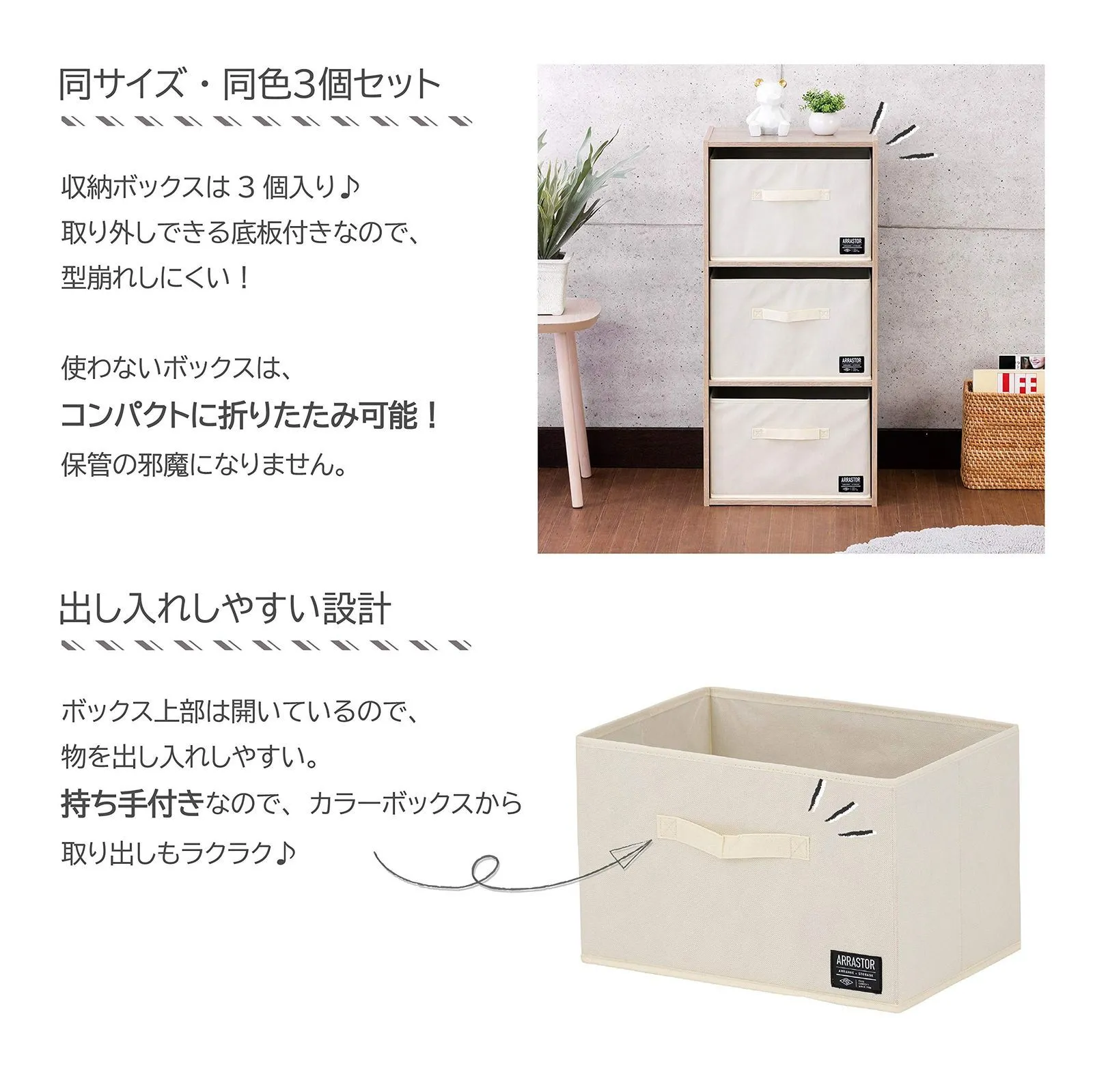 【収納・カラーボックス引き出し・折りたたみ】 武田コーポレーション(Takeda corporation) アイボリー 38×26×24㎝ デザインストレージBOX 3P K0-24IV3 色: アイボリー