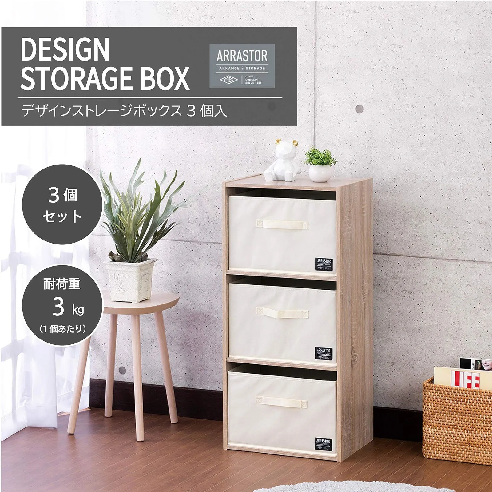 【迅速発送】【収納・カラーボックス引き出し・折りたたみ】 武田コーポレーション(Takeda corporation) アイボリー 38×26×24㎝ デザインストレージBOX 3P K0-24IV3