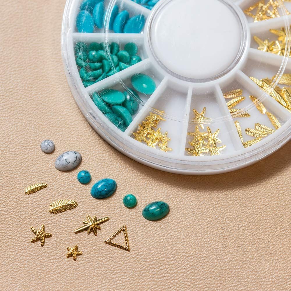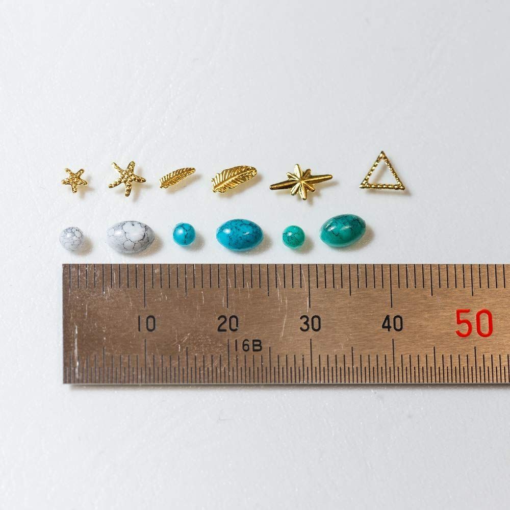 【パールストーン通販MK】アソート セット ケース付 ターコイズ ストーン(グリーン・ブルー・ホワイト)スタッズ メタルパーツ(ヒトデ・フェザー 羽・光 きらきら・三角 ぎざぎざ)厳選 パーツ 手作りアクセサリー ネイル 色: スタッズ(ヒトデ・フェザー 羽・光 きらきら・三角 ぎざぎざ) ◎ターコイズストーン3色×2サイズ(グリーン・ブルー・ホワイト×3mm/3×5mm)スタッズ6種類(ヒトデ2サイズ(3mm/5mm) 、フェザー2サイズ(5×1.5mm/6×2mm)、光きらきら(8×5mm)、三角ぎざぎざ(5mm)) ◎厳選した高品質ターコイズストーンとスタッズのケース付きセット。夏に向けたマリンテイストのネイルにピッタリです!大容量パックで気分に合わせてお使いいただけます。 ◎ネイル、デコレーション、ハンドメイド、レジン封入など幅広い用途にお使いいただけるサイズのスタッズ、メタルパーツです。 こちらの商品は、ポスト投函でお届けいたします。お受け取り時間のご心配をなさらずに、ご注文ください!