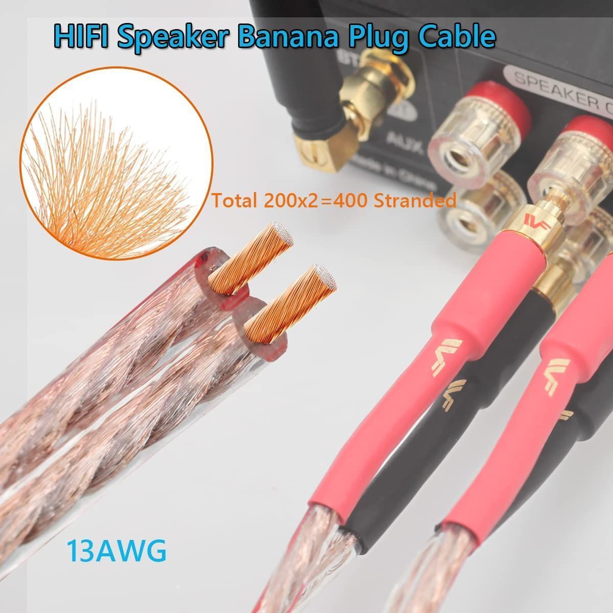【迅速発送】【UCINNOVATE】13AWG 無酸素純銅線 スピーカーケーブル バナナプラグ付 2本1組 バナナプラグ加工済 プラグ スピーカー ケーブル 完成品 400芯(x2)純銅 Banana Plugハンダ済み バナナプラグ ソルダーレス バナナプラ