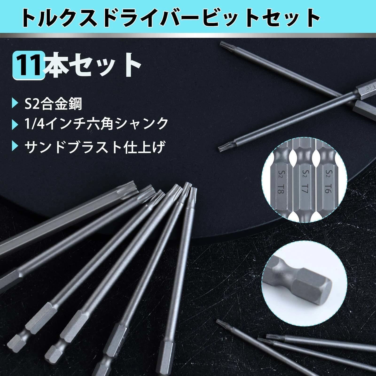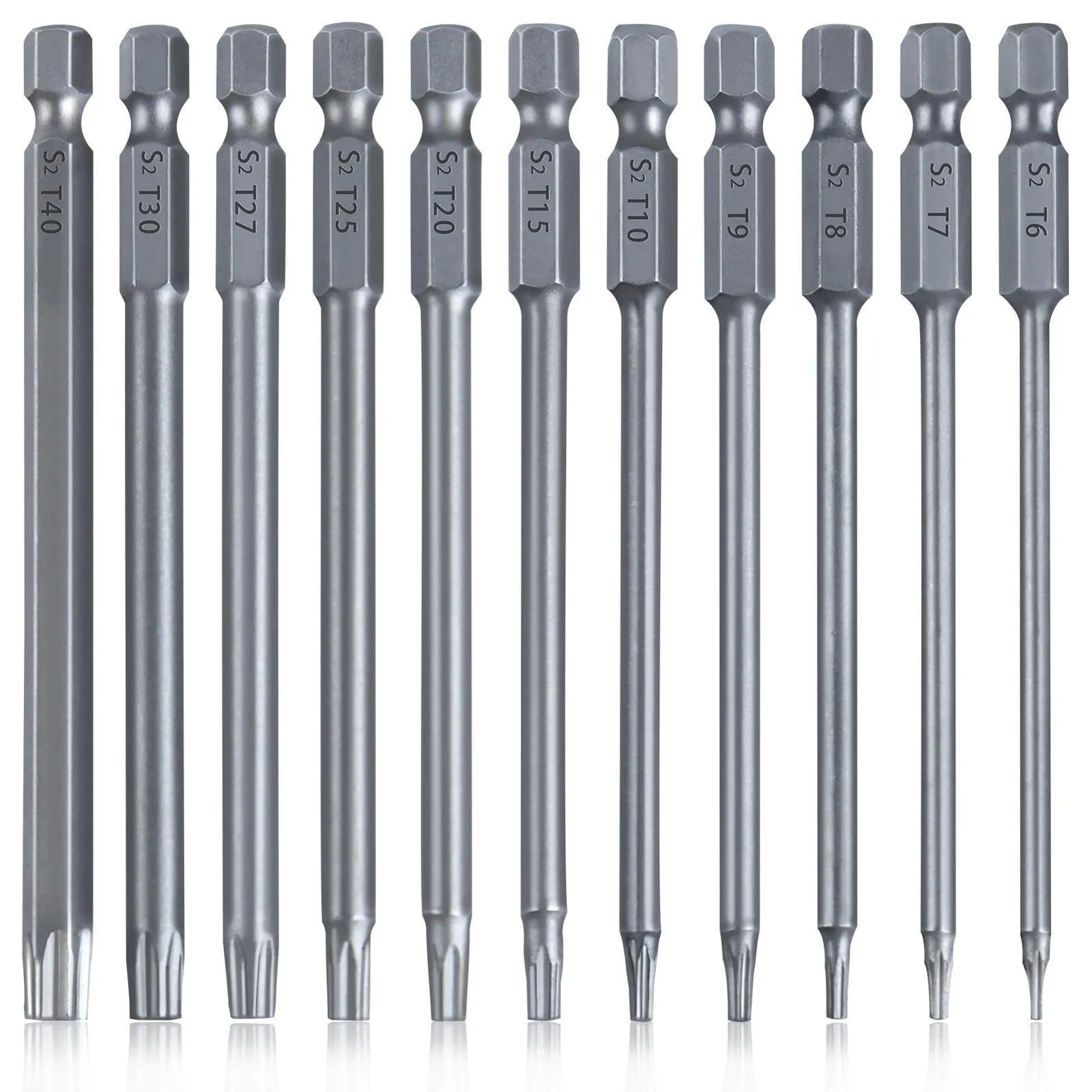 【迅速発送】LEONTOOL トルクスドライバービットセット 11本セット 中空トルクス頭 T6-T40 セキュリティトルクスビット トルクスドライバーセット 6.35mm六角軸 長さ100mm S2鋼 磁気ドライバービット ロング トルクス星ネジ用ビットセッ