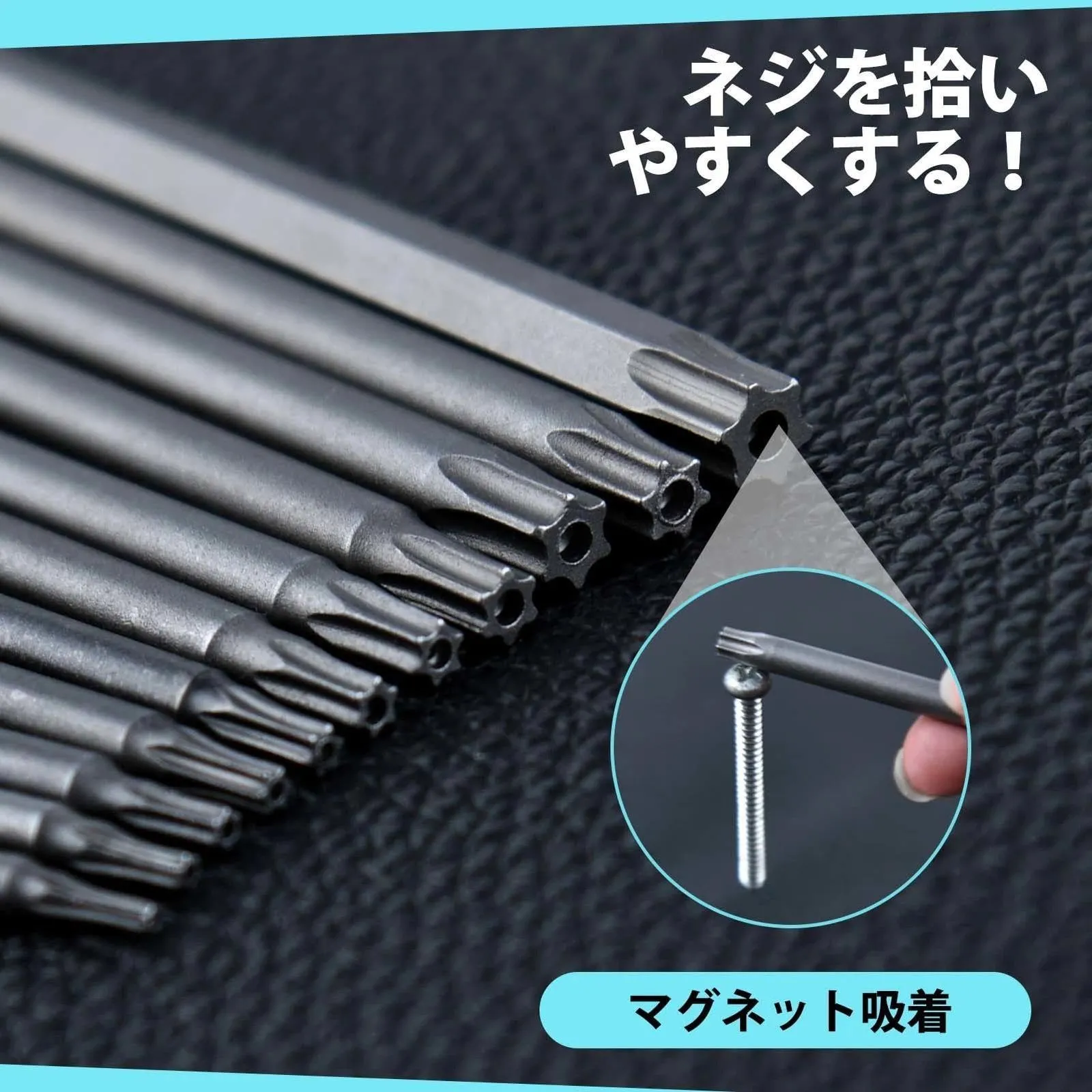 高精度:磁化可能なトルクスヘッドドライバービットは、ネジを簡単に固定できるため、作業効率が向上します。トルクスヘッドの各端は、ネジやドライバービットを損傷することなく、ネジを正確にロックします