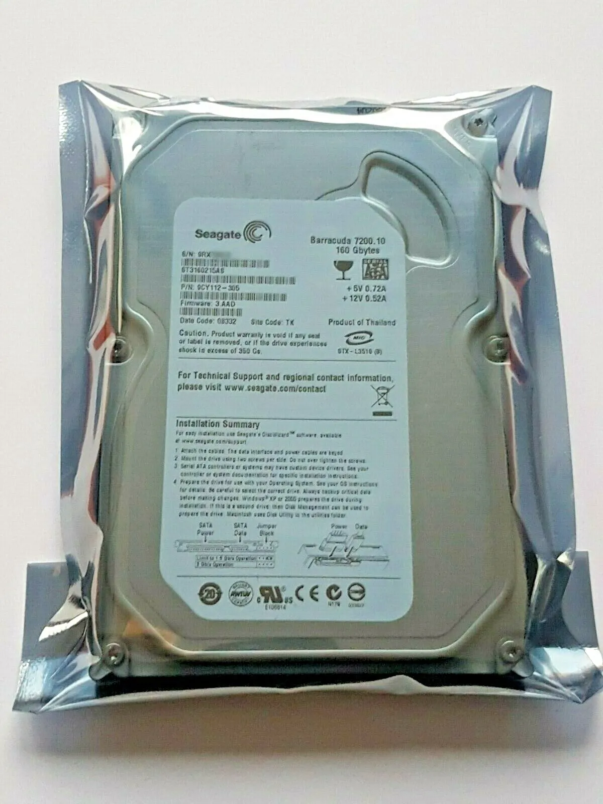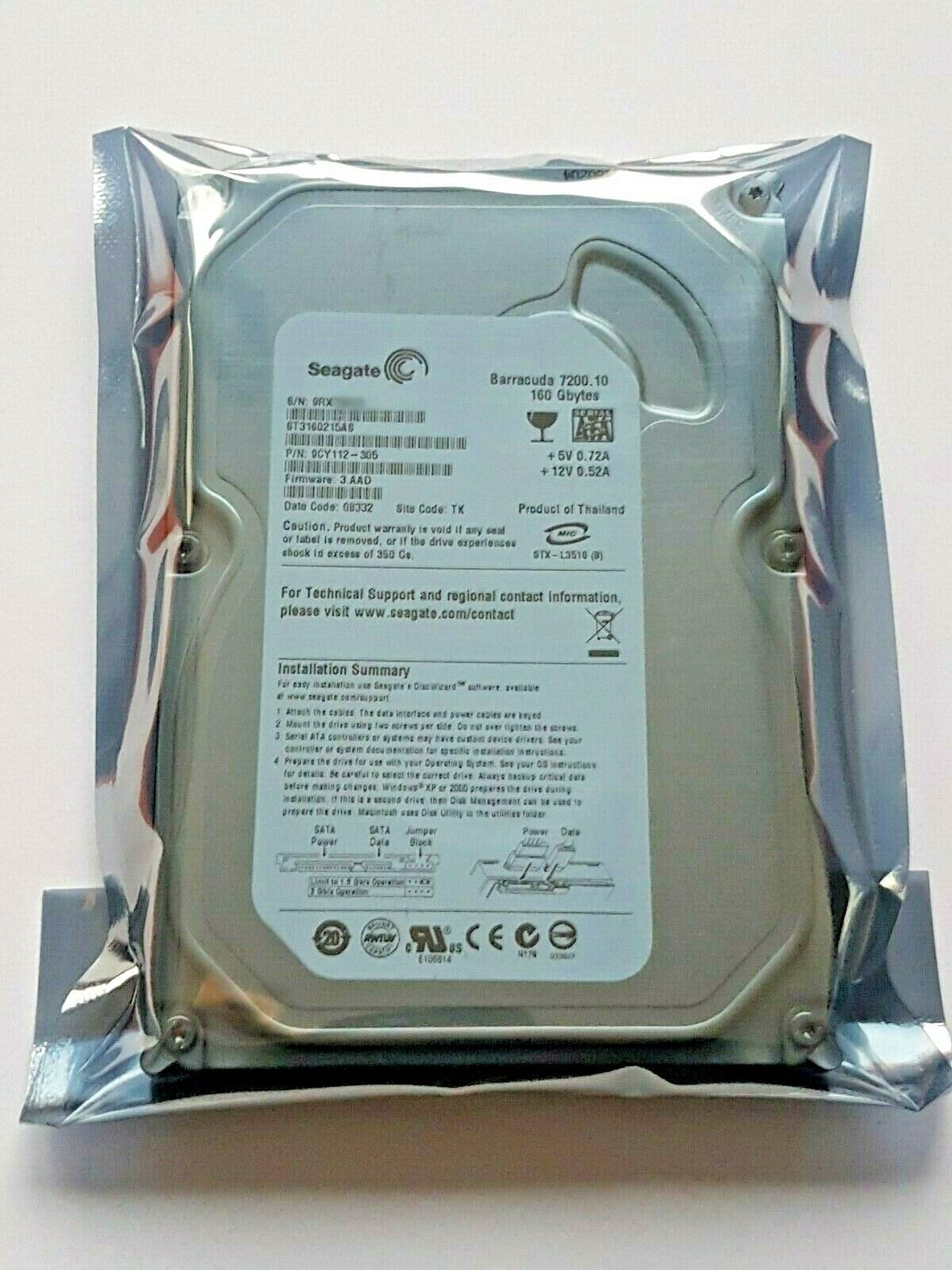 160 GB SATA Seagate Barracuda 7200.10 ST3160215AS FW:3.AAD 3.5 ハードドライブ