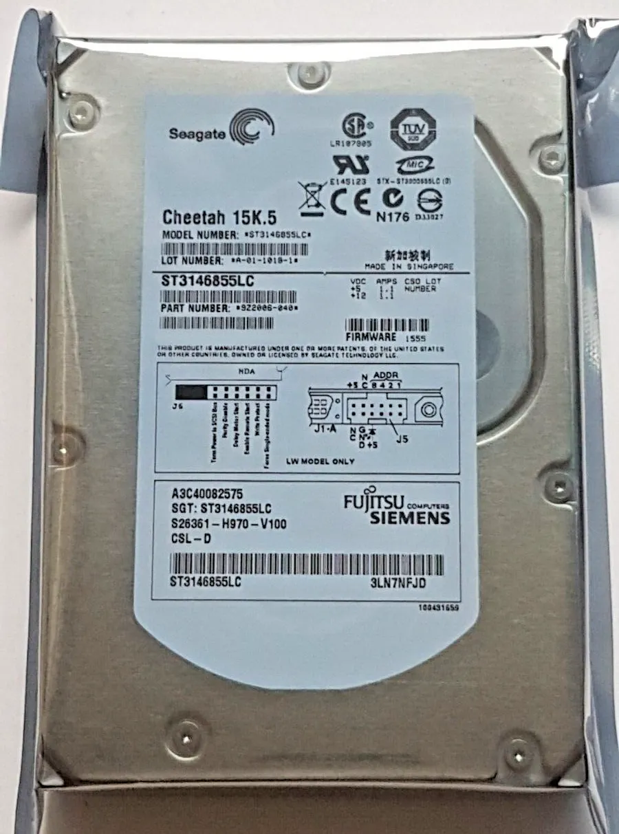146 GB Seagate Cheetah 15K.5 ST3146855LC U320-SCA SCSI 80ピン 3.5インチ ハードドライブ