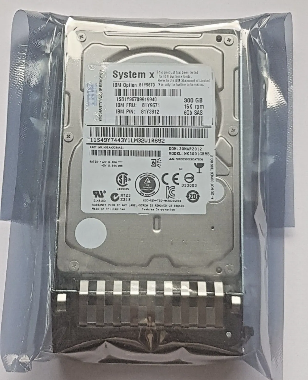 300 GB SAS IBM System X 81Y9670 MK3001GRRB 15K RPM 2.5インチ ハードドライブ + キャディ