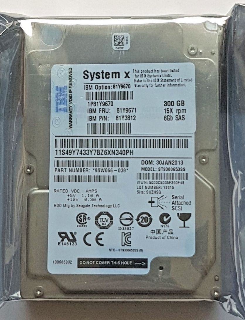 300 GB SAS IBM System X 81Y9670 ST9300653SS 15K RPM 64MB HDD 2.5インチハードドライブ