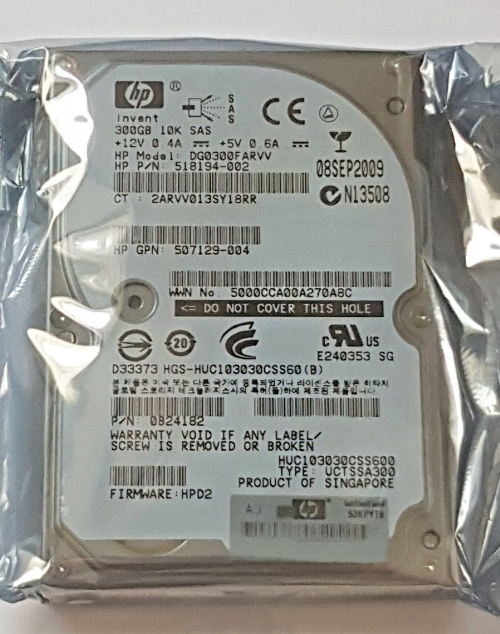 300 GB SAS 6gb/S HP DG0300FARVV 10k RPM 64MB SFF HDD 2.5 内蔵ハードドライブ