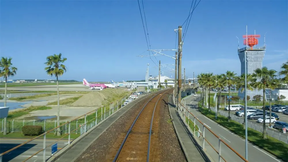 植樹されたフェニックスなど南国らしい風景を望みつつ最終駅である宮崎空港駅を目指す