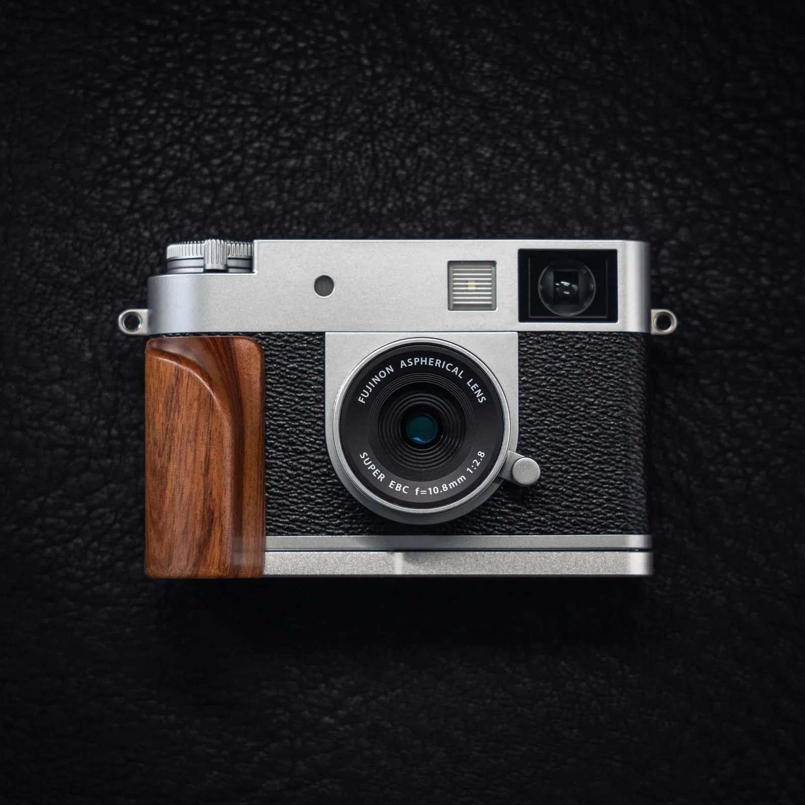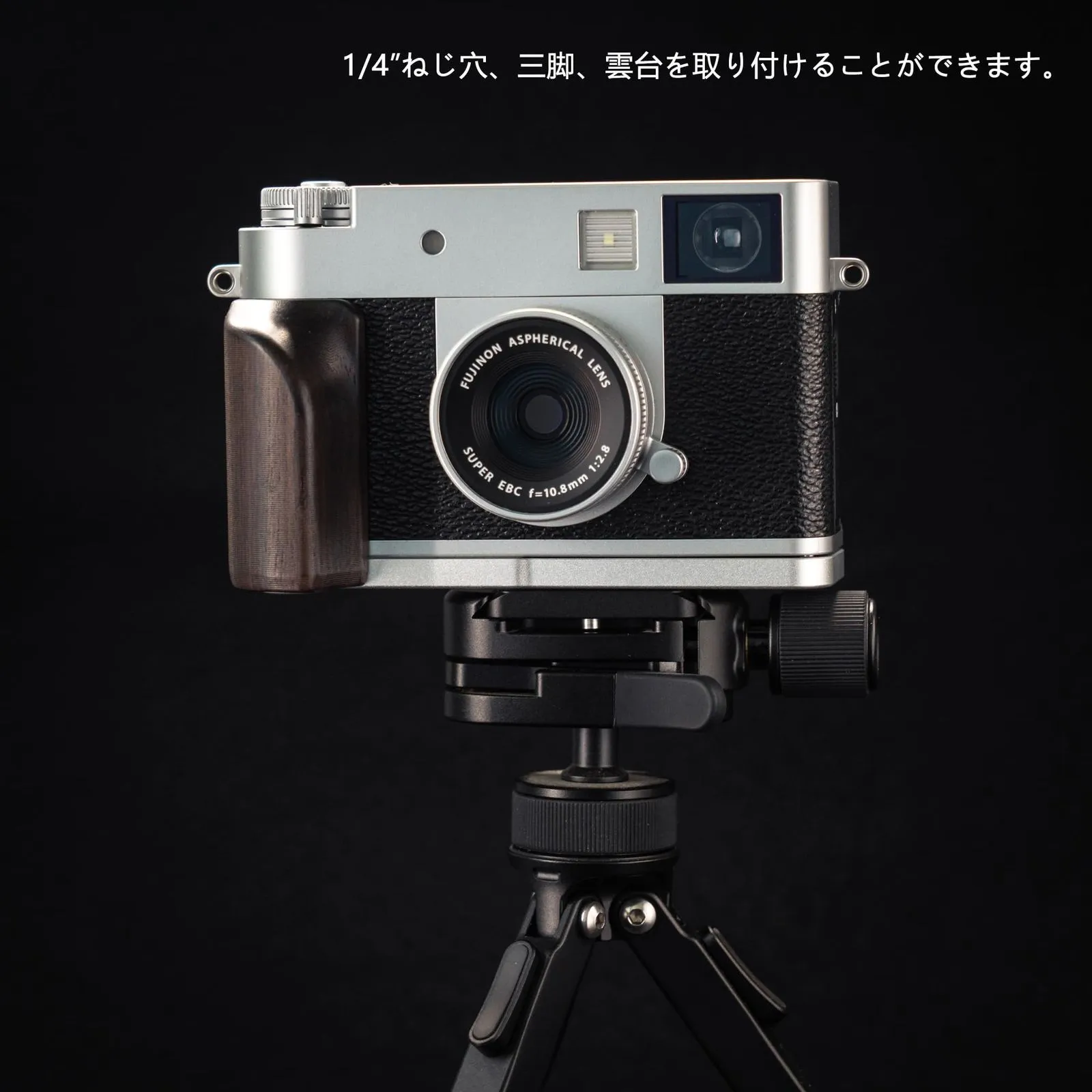 SIUTATDSH カメラグリップ 対応 Fujifilm Fuji 富士 フィルム X-half X-HF1 カメラ専用 L型クイックリリースプレート、実木製ハンドル、三脚設置でき (砂漠鉄木?板)
