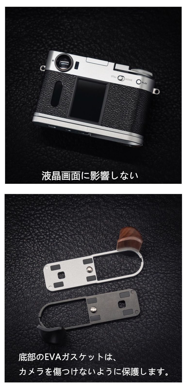 【高さフィット】対応 Fujifilm Fuji 富士フィルム X-half X-HF1 カメラ専用 L型クイックリリースプレート、真機サイズ1:1に基づいて設計をカスタマイズし、速装板とカメラ本体底部とのシームレスな結合を実現し、カメラの使用時の揺れを回避した。増加したEVAパッドは、カメラの底部を擦り傷から効果的に保護することができる。 製品の詳細 1.