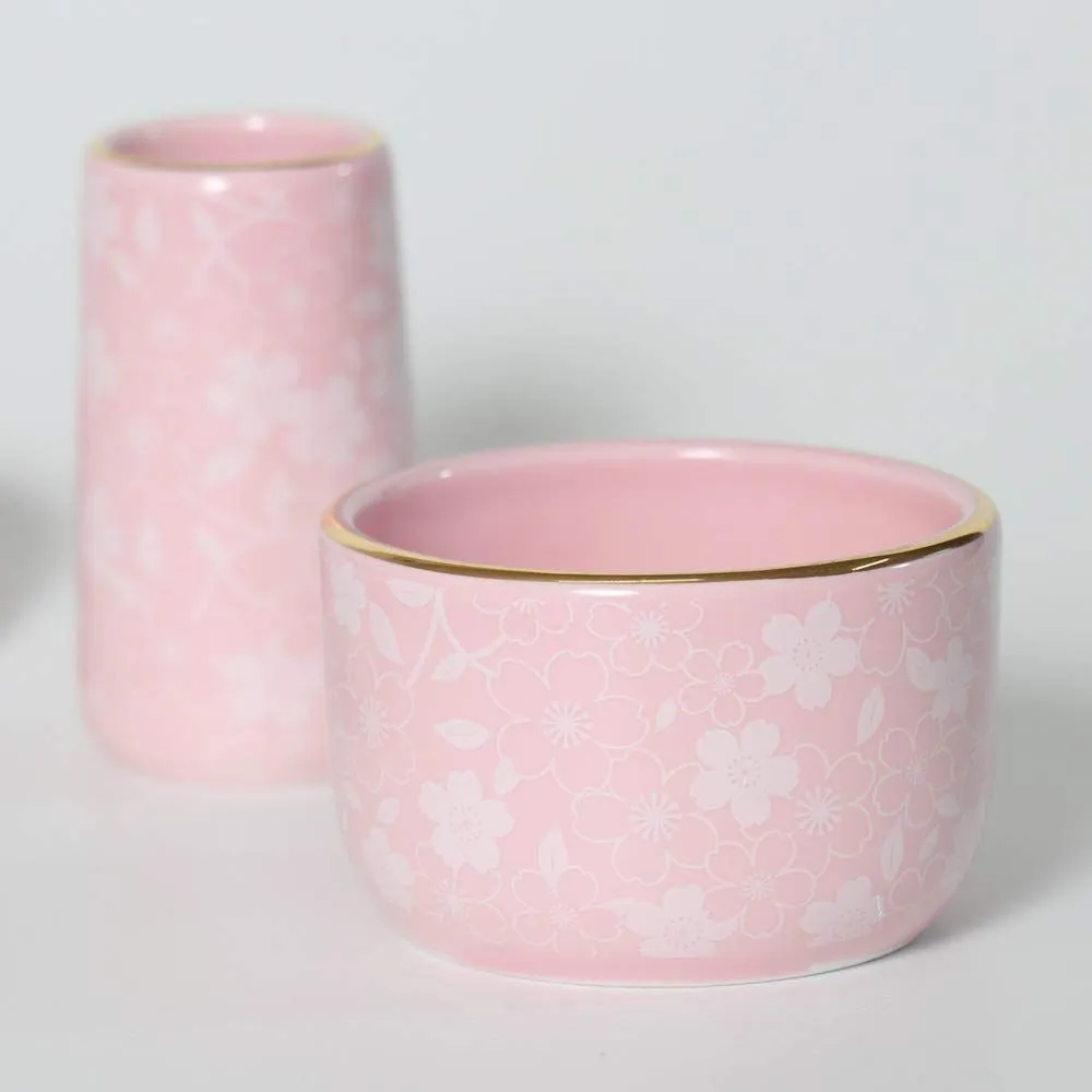 新品 陶器仏具セット【6点】「コスモス」ピンク さくら柄