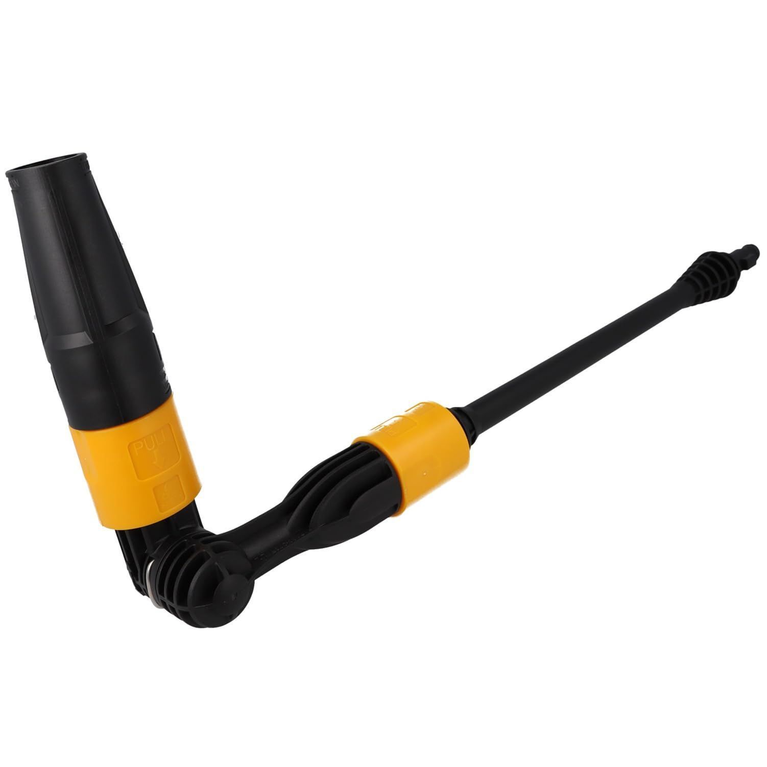 ノズルの角度が自由に調整可能(±90度)できるため、バリアブルノズルランス等が届かない車の下回りや雨どいなど手の届きにくい場所の洗浄の洗浄に適している