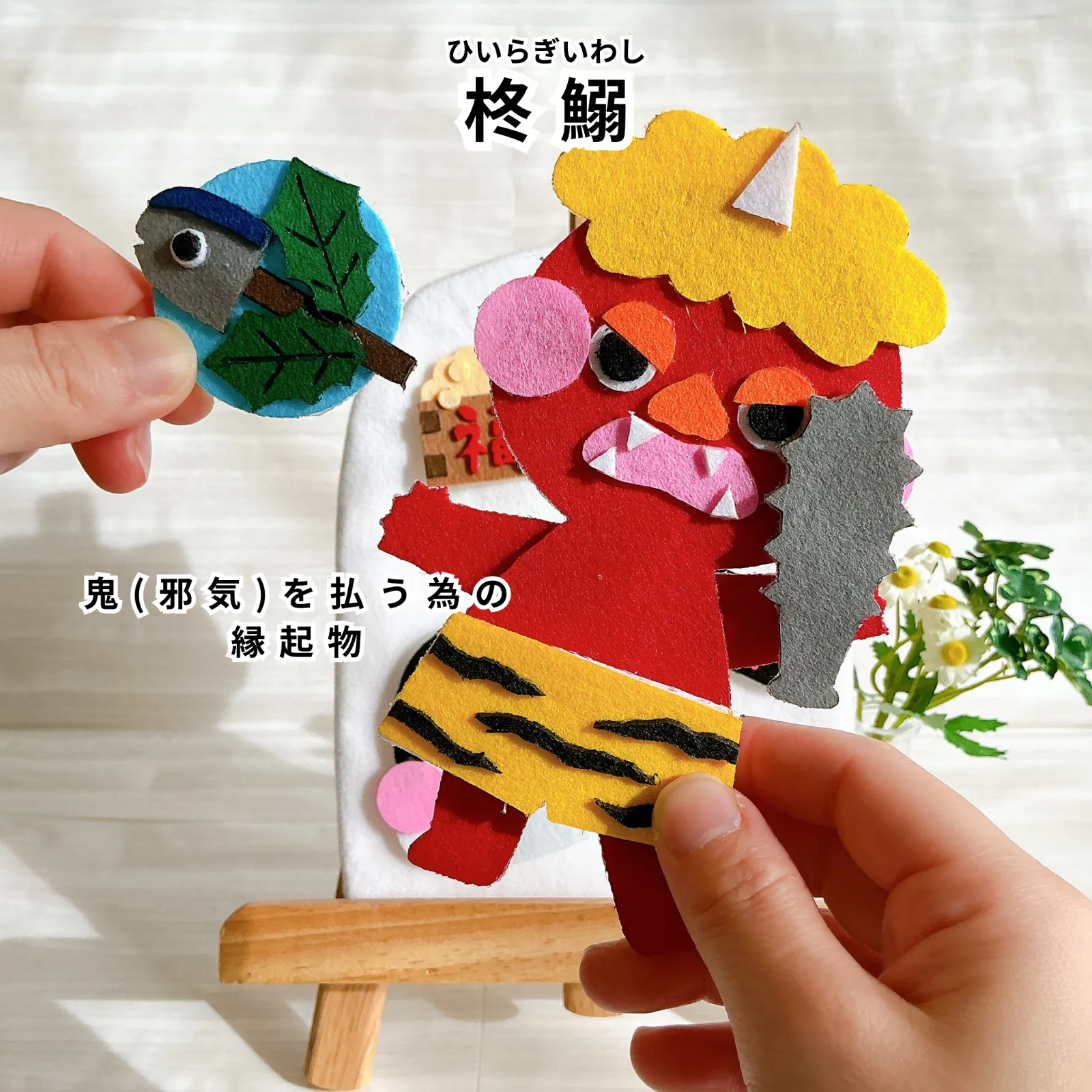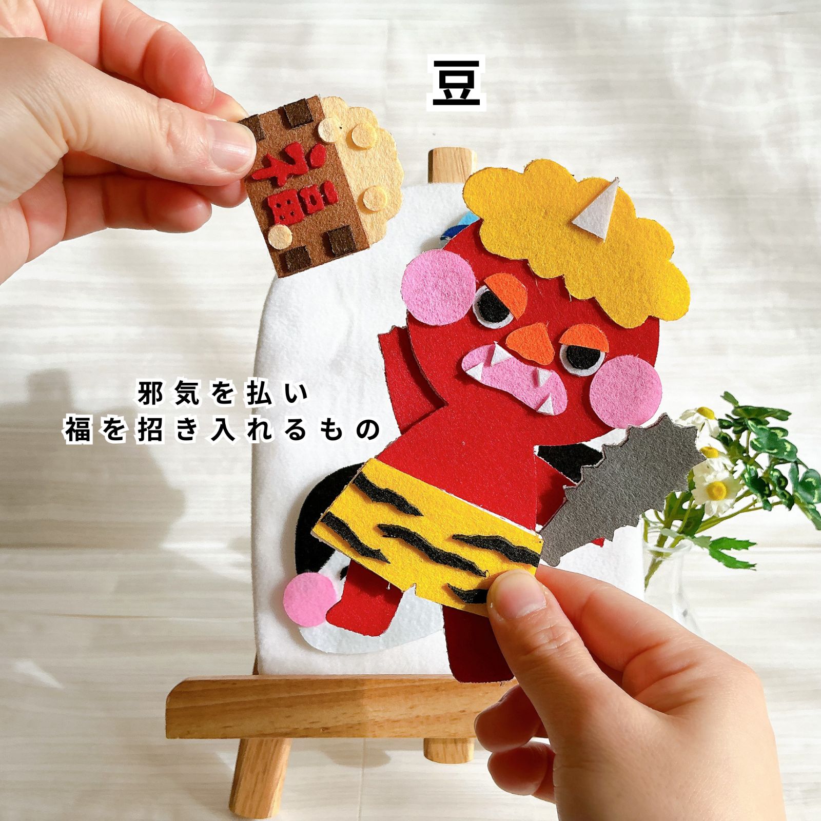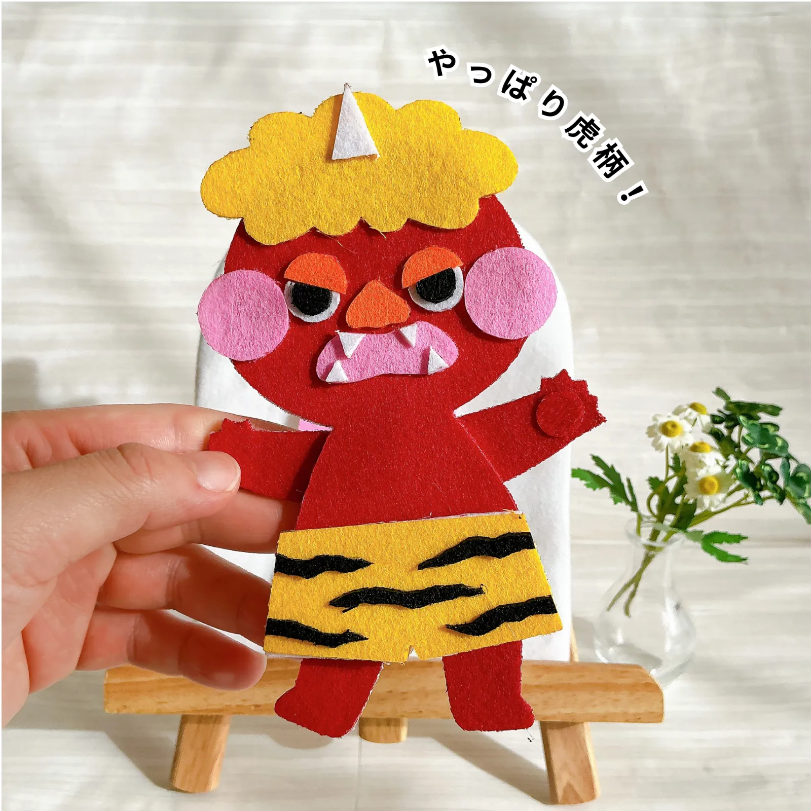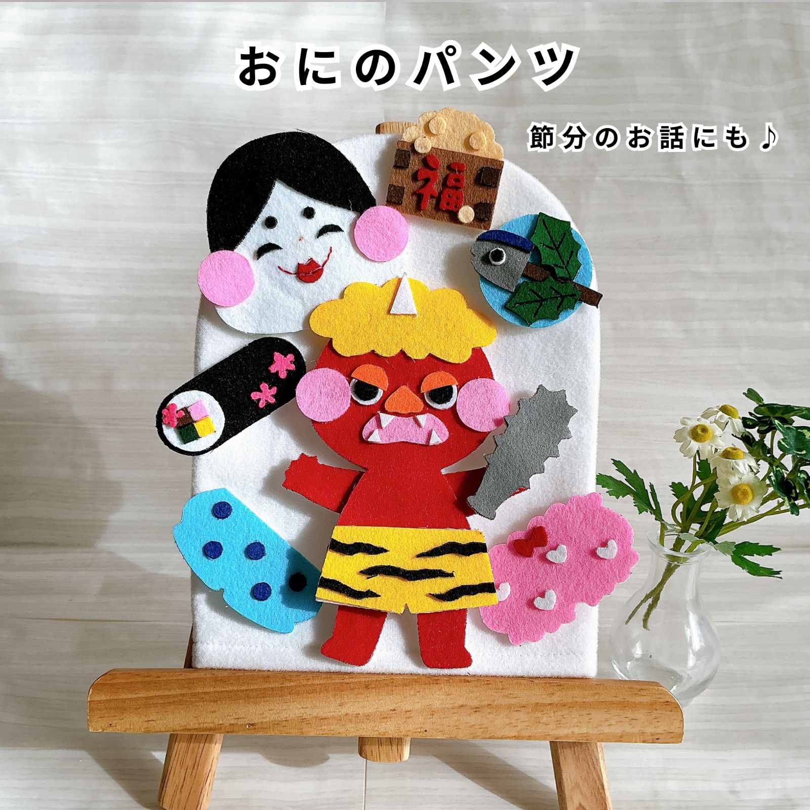 【シアターの特徴】 ◯『おにのパンツ』『まめまき』の歌詞付きです! ◯手袋は両面トイクロス生地です。 ◯人形はトイクロスに貼ったり外したりと自由に動かせます。 ◯鬼の腰と左手にもトイクロスが付いているのでパンツを着替えたり、金棒を持ったり出来ます! ◯鬼の手足は自由に動かせます! ◯硬めのフェルトを2枚重ねにして比較的丈夫にできています。
