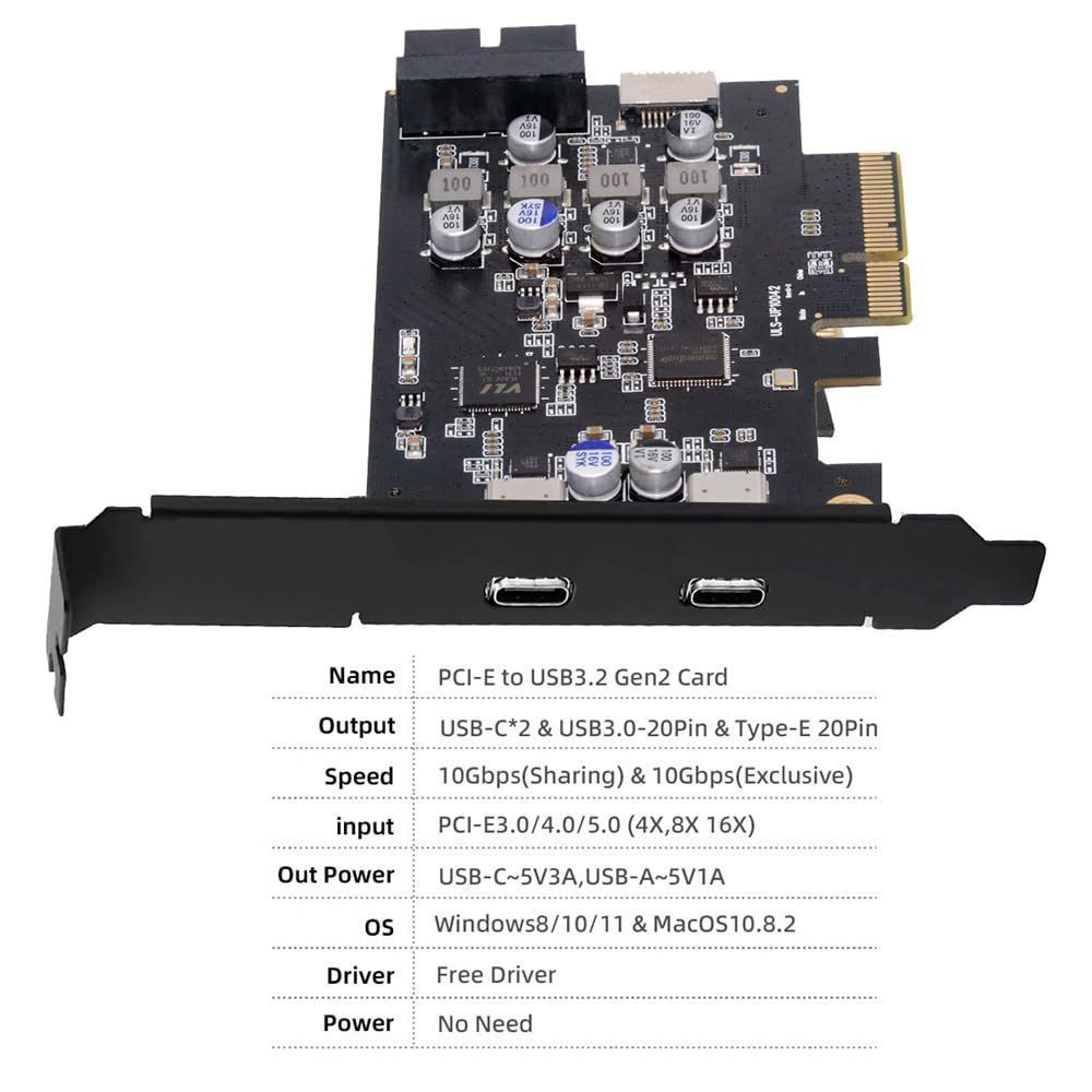 新品 Xiwai PCI-E Expressカード - Type-E USB 3.1フロントパネルソケット&USB3.0 19ピン/20ピン & デュアルUSB-C Type-C拡張アダプター ASM3142 VL822