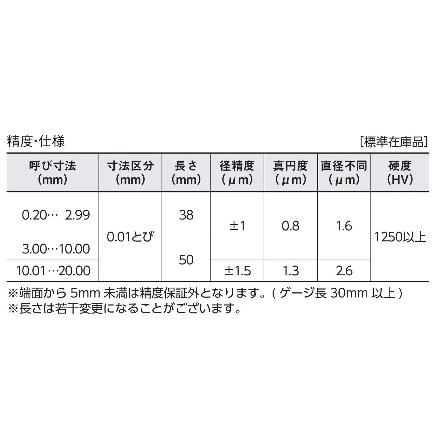 真円度・円筒度(μm) : 0.8
