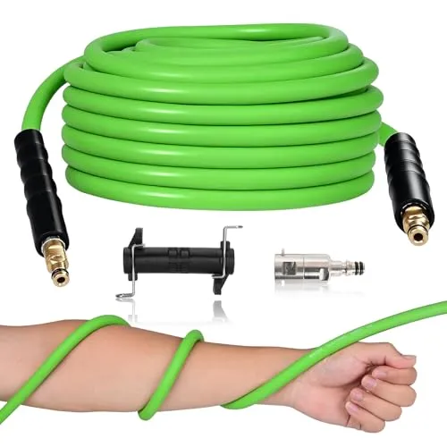 【外観も実用性も優れた緑のケルヒャーホース】緑のチューブを使用することで、暗闇でも見分けがつきやすく、ケルヒャーの機械によく適合します。ケルヒャー耐圧ホースは3層の構造で、外層は高品質のPVC素材で、内層はPUチューブで、硬度と耐久性に優れています。ホースの両端のコネクタ部分は真ちゅう製で、サビに強く、耐久性に優れています。ケルヒャーホース圧力:18 MPaになります。