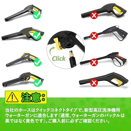 【適応範囲】一般的にはK2K7、サイレントシリーズ、JTKシリーズ JTK25 JTK38 K-miniシリーズに適しています。 ケルヒャー本体の生産時期が異なるため、1ぐらい微妙な差があり、たまに合わない状況もあります。 商品到着後、付属品が揃っているか、スムーズに接続できるかを確認して、異常があれば、弊社と確認して返品・全額返金が可能です。