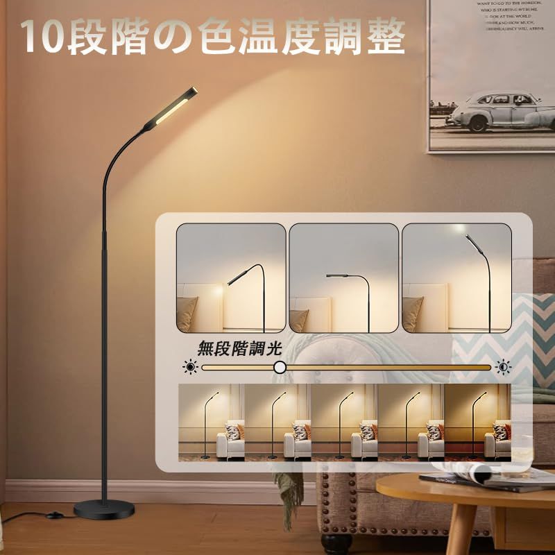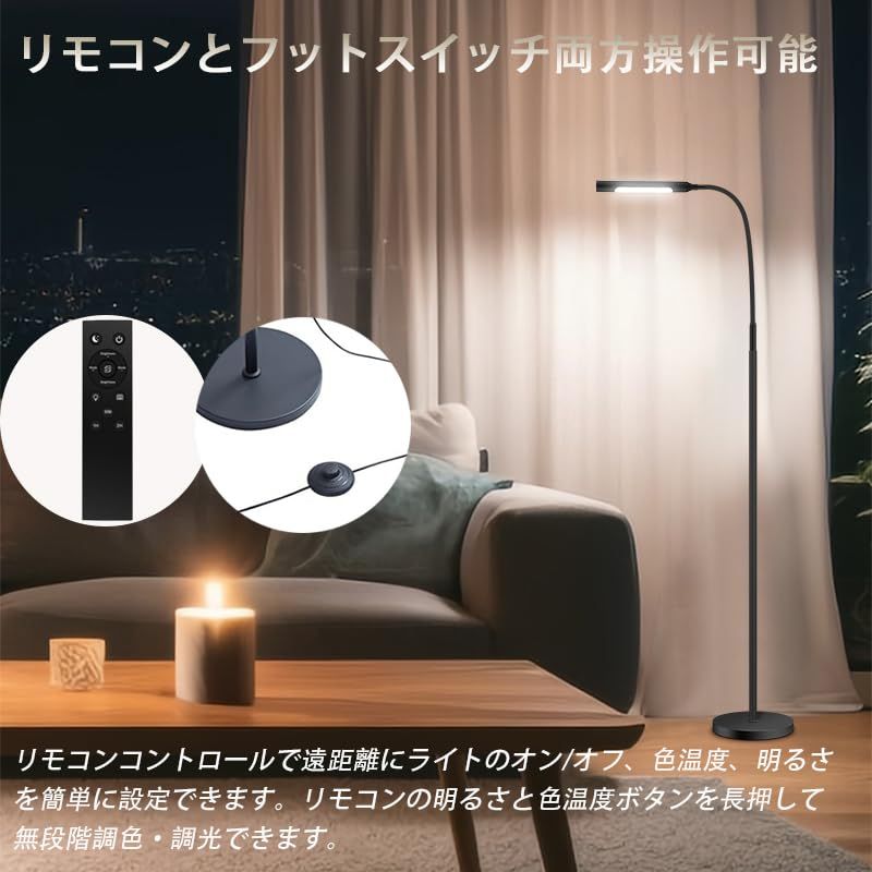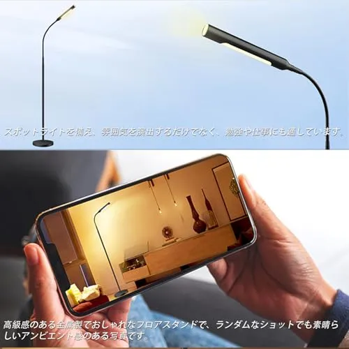 【高級感&省エネ&品質保証】高級感のあるシンプルおしゃれなフロアスタンド!光源を2つ搭載し、柔らかい光がお部屋をやさしく照らし、快適でおしゃれな空間を演出します。高級感のある黒色とシンプルなデザインも魅力的です。高品質なLED チップを使用して、12Wの消費電力で1000lmの明るさが実現でき、電気代を約90%節約できるし、環境と家計に優しくてエコな省エネ照明です。ま