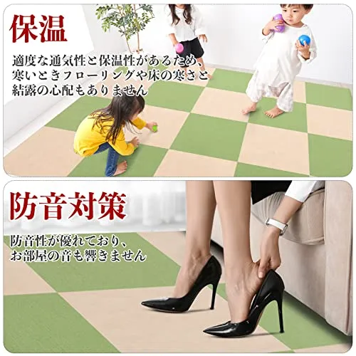 【優れた機能性】滑りとめ:表面4mm厚の高品質ポリエステルは滑りとめの性能をアップさせます、足腰が弱いご老人や子供も心配なく家中に歩けます。保温:適度な通気性と保温性があるため、寒いときフローリングや床の寒さと結露の心配もありません。床暖房対応できます:冬の大人気!ほとんどのおうちの床暖房には対応できます、安心して使ってください。防音対策:防音性が優れており、お部屋の音も響きません。床暖房対応、冬にも暖かく楽しい!適応性が広い:高品質の材質で作られマットは、いろんな場所で使える!?リビング。?玄関。?台所。?和室(洋式)部屋。?廊下。?ペット用。?子ども部屋。?オフィス。?保育園や施設など。お客様の都合によって、必要な場所に好きなだけ、使ってください。 4、