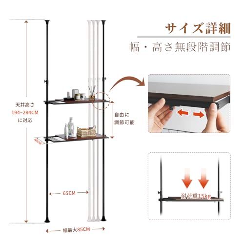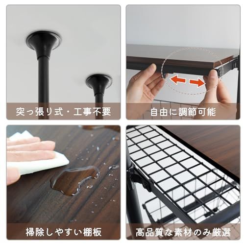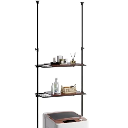 【送料無料】LYNCOHOME 棚付きランドリーラック 【横幅・高さ無段階調節】突っ張り おしゃれ 洗濯機ラック 壁面収納 一人暮らし 転倒防止 【幅65-85cm 天井194-284cm対応 ウォールナット】