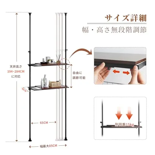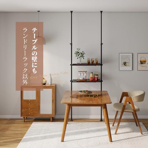 【賃貸でも安心!穴あけ不要の突っ張り式設計】突っ張りポールで天井に固定するタイプなので、壁に穴を開けずに設置可能。工具不要で組み立ても簡単、原状回復が必要な賃貸住宅でも安心して使える。