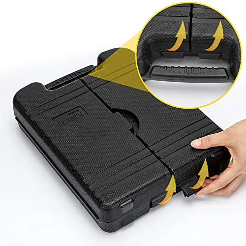 【省スペース設計】スリムなケースは、指紋や傷に強いダイヤモンドテクスチャの表面を備えたコンパクトなフットプリントを誇ります。 寸法13.25インチ x 10.2インチ x 2.7インチ (長さx幅x高さ)、この軽量ツールキットはわずか5ポンドの重さで、完全な機能性と狭いスペースに簡単に収納できます。