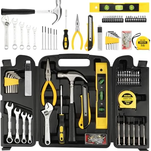 【総合的なツールセレクション】このホームメンテナンスキットには、さまざまなタスクに不可欠なツールが豊富に含まれています。 コンビネーションレンチ、6インチのロングノーズプライヤー、6インチのモンキーレンチ、8オンスの爪ハンマー、10フィートの巻尺、アレンレンチ、バブルレベル、その他の基本的なワークショップの必需品が含まれています。