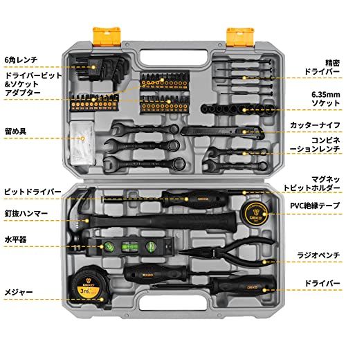 【人気のある工具セット】ホームツールセットは使用頻度の高い148点ツールをワンセットに揃えるし、人間工学に基づいた設計も採用するし、使い勝手がとても良いです。詳しいセット内容は画像または詳細ページの内容をご覧ください。