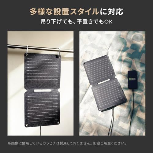 太陽光でスマートフォンを充電:太陽の光を電力に変えて、スマートフォンなどのUSB機器を充電できるポータブルソーラーパネル充電器です。アウトドアや災害時など電源が無い場所でも太陽光があれば使用できます。