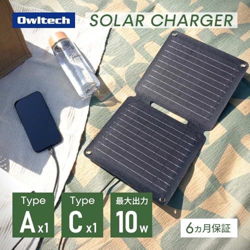 【送料無料】オウルテック 折りたたみ式 ソーラーパネル 10W出力 吊り下げ/平置き Type-A Type-C 各1ポート単結晶 シリコンパネル 重さ 410g グレー OWL-SLP10W-GY