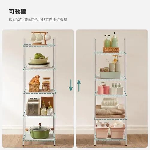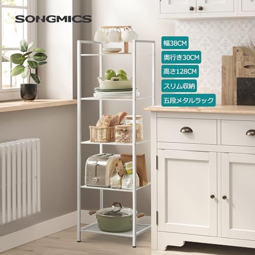 【送料無料】SONGMICS オープンラック スチールラックスリム すき間収納 ベーシック 五段 幅38CM×奥行き30CM×高さ 129.5CM収納ラック 高度 調整可能BSC035W01