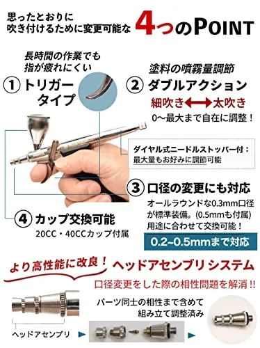 【口径の変更にも対応】オールラウンドな0.3mm口径が標準装備。(0.5mmも付属) 用途に合わせて交換可能! 0.20.5mmまで対応します。弊社独自なヘッドアセンブリ システムを採用し、口径変更をした際の相性問題を解消できます。