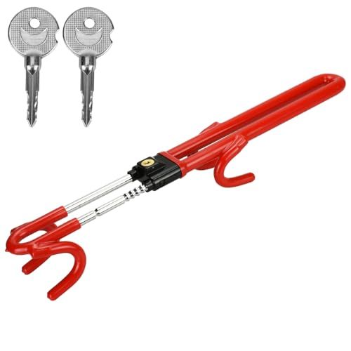 【送料無料】防犯ハンドルロック 車両盗難防止 伸縮式 目立つ 切断されにくい 愛車 軽自動車 トラック リレーアタック対策 二重施錠 防犯 (レッド)