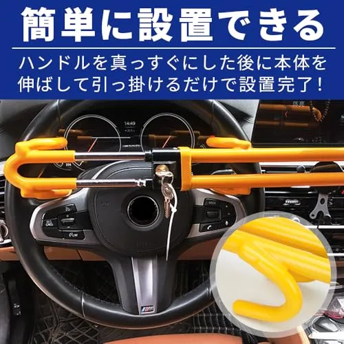 ハンドルに引っ掛けて鍵を掛けるだけで動かないよう固定できる防犯ハンドルロックです。頑丈な鉄で造られたロックとシリンダー構造の2段構えの防犯対策により、リレーアタックをはじめとした車両盗難手口に対抗します。