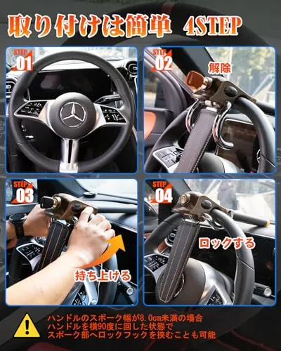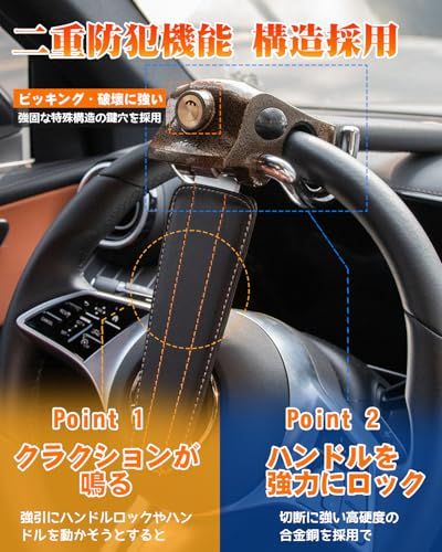 【送料無料】JiiinMiiin 自動車用ステアリングロック ハンドルロック 二重防盗設計 高硬度鉄製 耐切断・防錆仕様 車種対応広域 緊急脱出 鍵穴