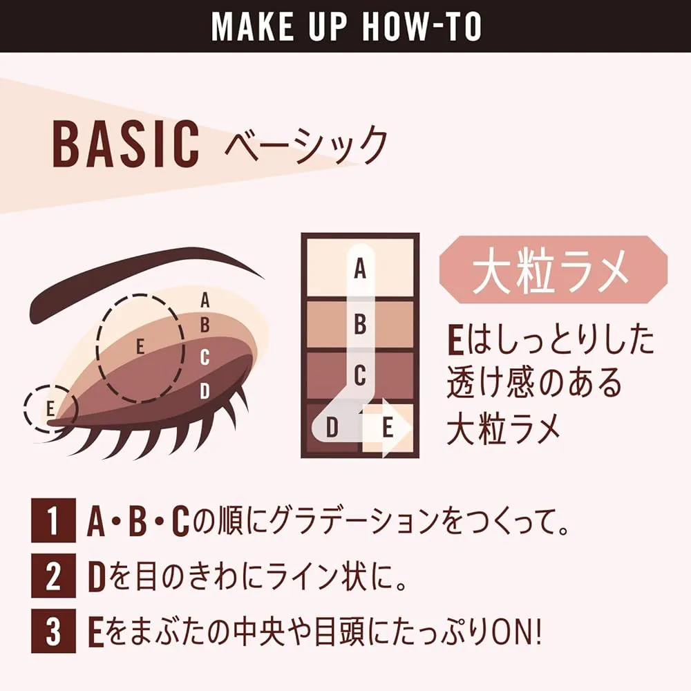 【内容量】 4.5g 原材料・成分 タルク、合成金雲母、水添ポリイソブテン、ミネラルオイル、リンゴ酸ジイソステアリル、メタクリル酸メチルクロスポリマー、トリエチルヘキサノイン、ホウケイ酸(Ca/Al)、トコフェロール、イソドデカン、エチルヘキサン酸セチル、シリカ、スクワラン、セスキイソステアリン酸ソルビタン、セスキステアリン酸ソルビタン、ヘキサ(ヒドロキシステアリン酸/ステアリン酸/ロジン酸)ジペンタエリスリチル、ワセリン、酸化スズ、香料、グンジョウ、マイカ、酸化チタン、酸化亜鉛、酸化鉄、硫酸Ba 使用方法 ・上段3色で、指またはチップを使いグラデーションをつくります。 ・キラキラカラーは上まぶた中央や目頭など輝かせたいところにのせます。 「主な仕様」全成分:タルク、合成金雲母、水添ポリイソブテン、ミネラルオイル、リンゴ酸ジイソステアリル、メタクリル酸メチルクロスポリマー、トリエチルヘキサノイン、ホウケイ酸(Ca/Al)、トコフェロール、イソドデカン、エチルヘキサン酸セチル、シリカ、スクワラン、セスキイソステアリン酸ソルビタン、セスキステアリン酸ソルビタン、ヘキサ(ヒドロキシステアリン酸/ステアリン酸/ロジン酸)ジペンタエリスリチル、ワセリン、酸化スズ、香料、グンジョウ、マイカ、酸化チタン、酸化亜鉛、酸化鉄、硫酸Ba パッケージ重量: 0.04 kg 内容量:4.5g 仕上げタイプ: セミマット