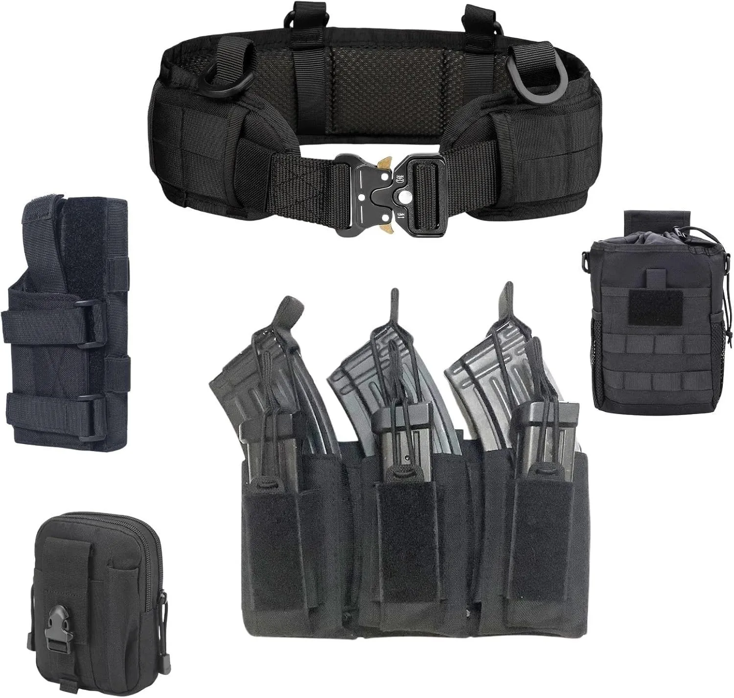 【サバゲー装備を一式まとめた実戦向けセット】 本製品は、サバイバルゲームや射撃トレーニングに必要な装備をまとめて携行できる実用的なタクティカルセットです。ベースとなるベルトに加え、ハンドガン用ホルスター、マガジンポーチ、ダンプポーチを組み合わせ、実戦的な装備ラインを構築できます。腰回りの装備を効率よくまとめることで、戦闘中の動作をスムーズにし、リロードやツール取り出しのタイムロスを最小限に抑えます。ナイロン素材を中心に、摩擦や湿気に強い仕様でアウトドア環境でも安定した使用感を実現。初心者から上級者まで扱いやすく、装備強化や戦術練習に適したセットです。