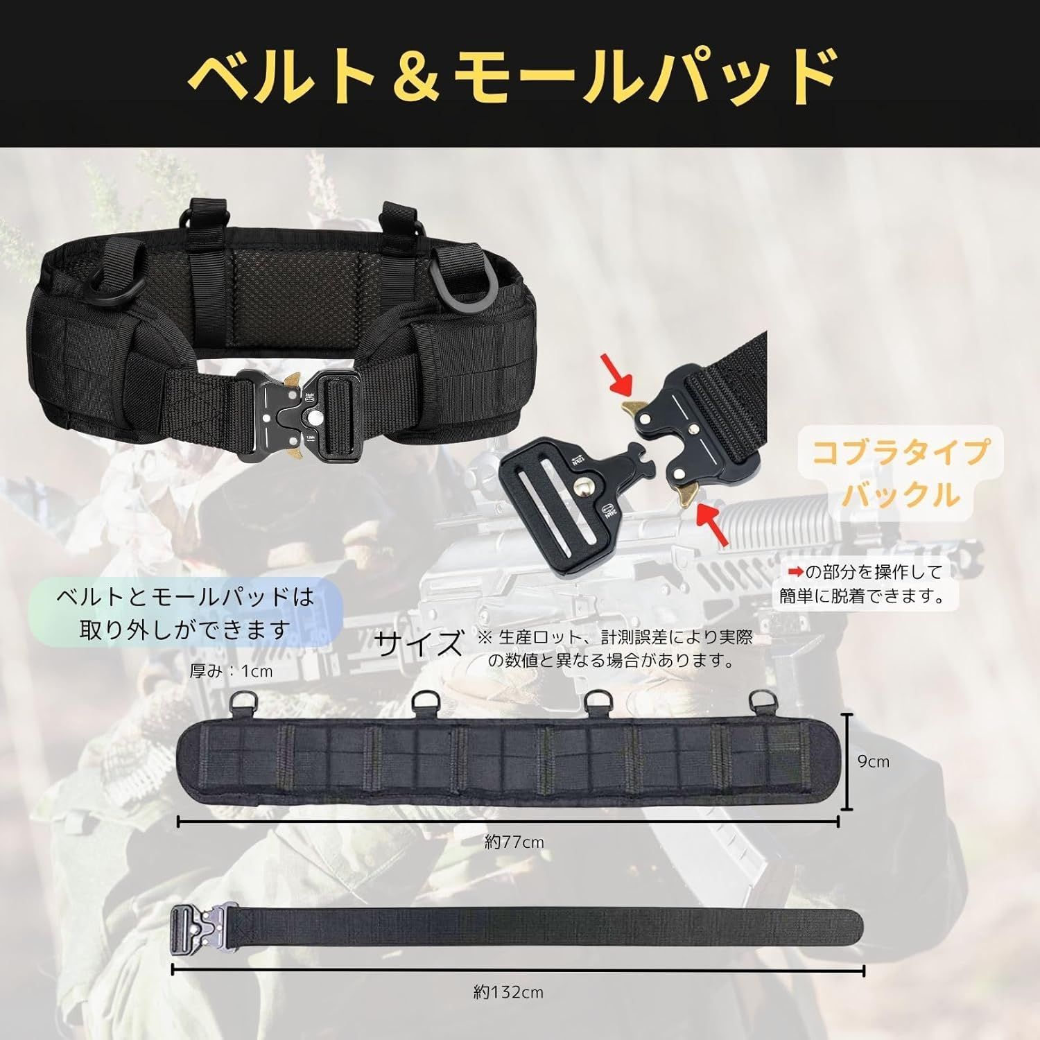 【タクティカルベルト】 適合ウエスト80cm~115cm