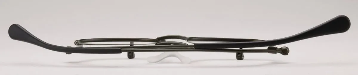 ホビーグラスの新型はもちろん跳ね上げ式であり、約24gと軽いため長時間の使用でも疲れにくく、畳むと約19mmと薄くなることでかばんやポケットに携帯しやくなりました。