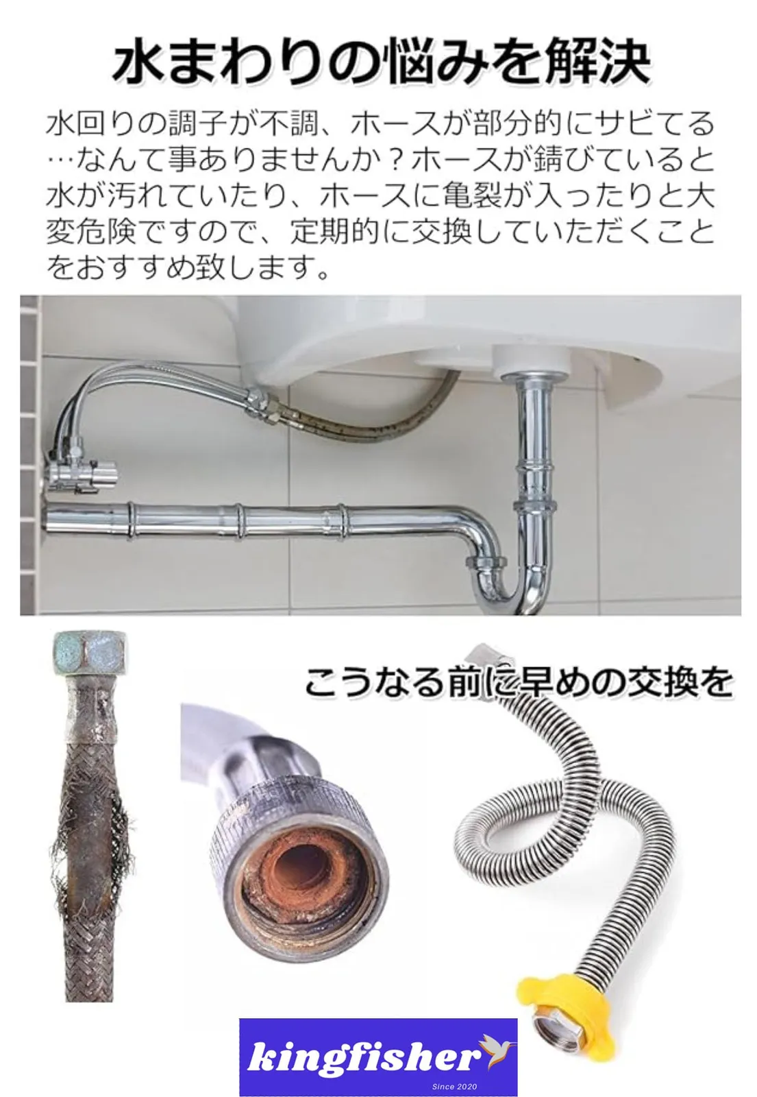 【Kingfisher】 フレキパイプ 水道用 フレキシブルパイプ ステンレス製 【 水道 トイレ 配管 洗面所 などのパイプ交換に最適(冷水・熱湯ともに対応)】 フレキ管 フレキホース 2本セット 配管交換 (L20) [L20]