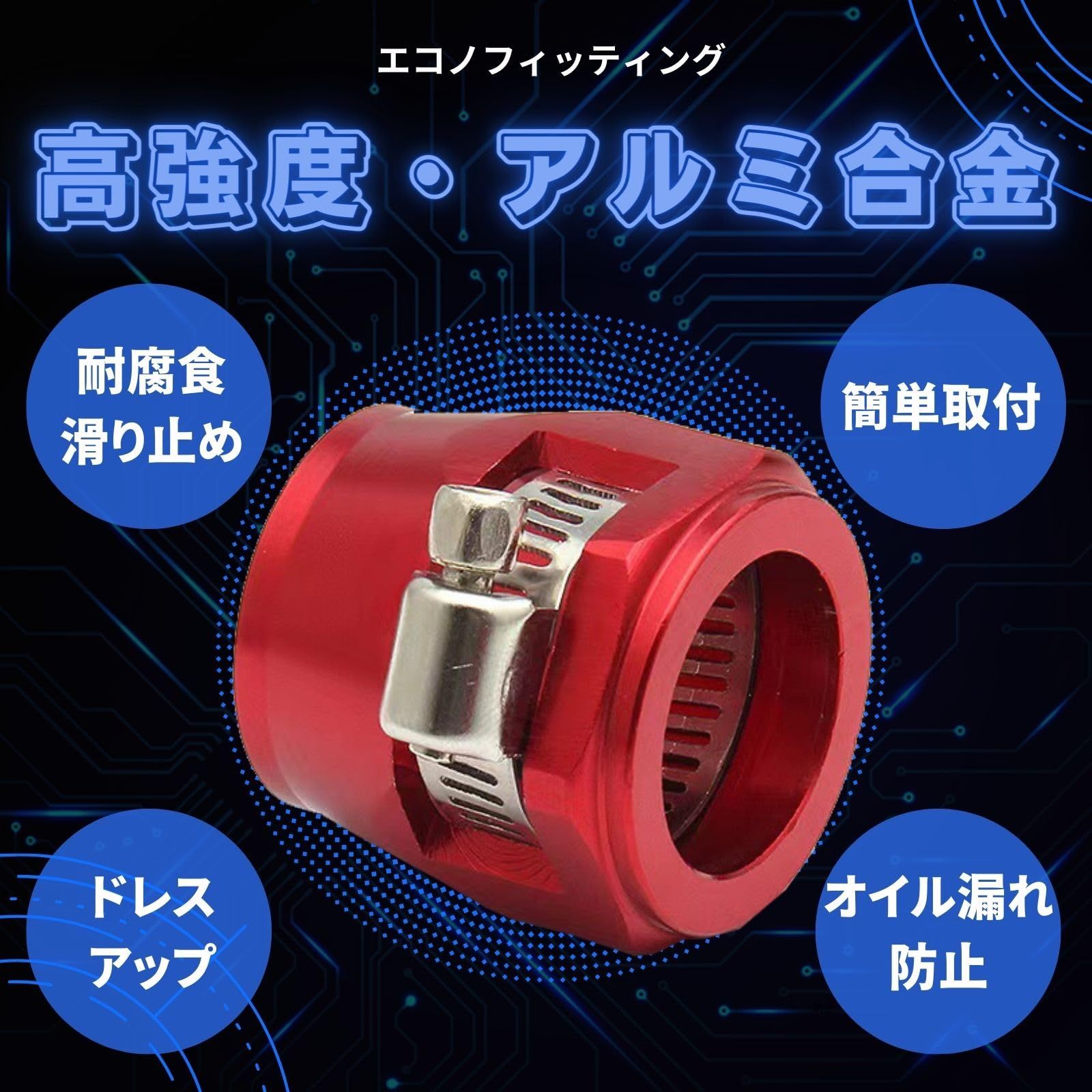 【商品仕様】エコノフィッティング4個セット サイズ:AN8(外径:17.8mm、内径:12.8mm)、AN10(外径:20.5mm、内径:15.4mm) 材質:アルミ合金。 カラー:レッド、ブラック、ブルー エコノフィッティングは、あなたの車のパフォーマンスと見た目を一新し、さらなる満足感を提供します。今すぐこの高品質なフィッティングを手に入れて、最高のカーライフを楽しんでください。
