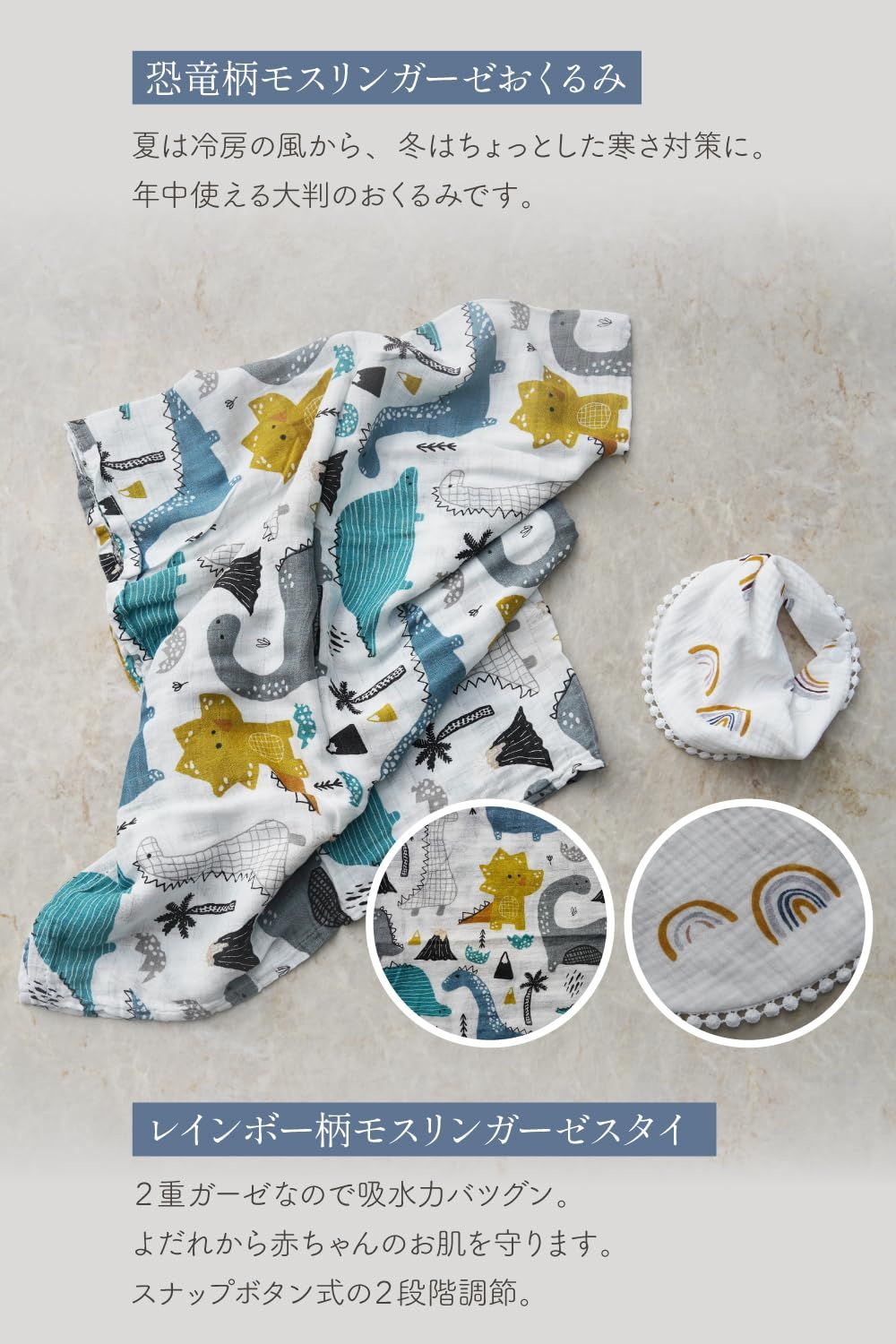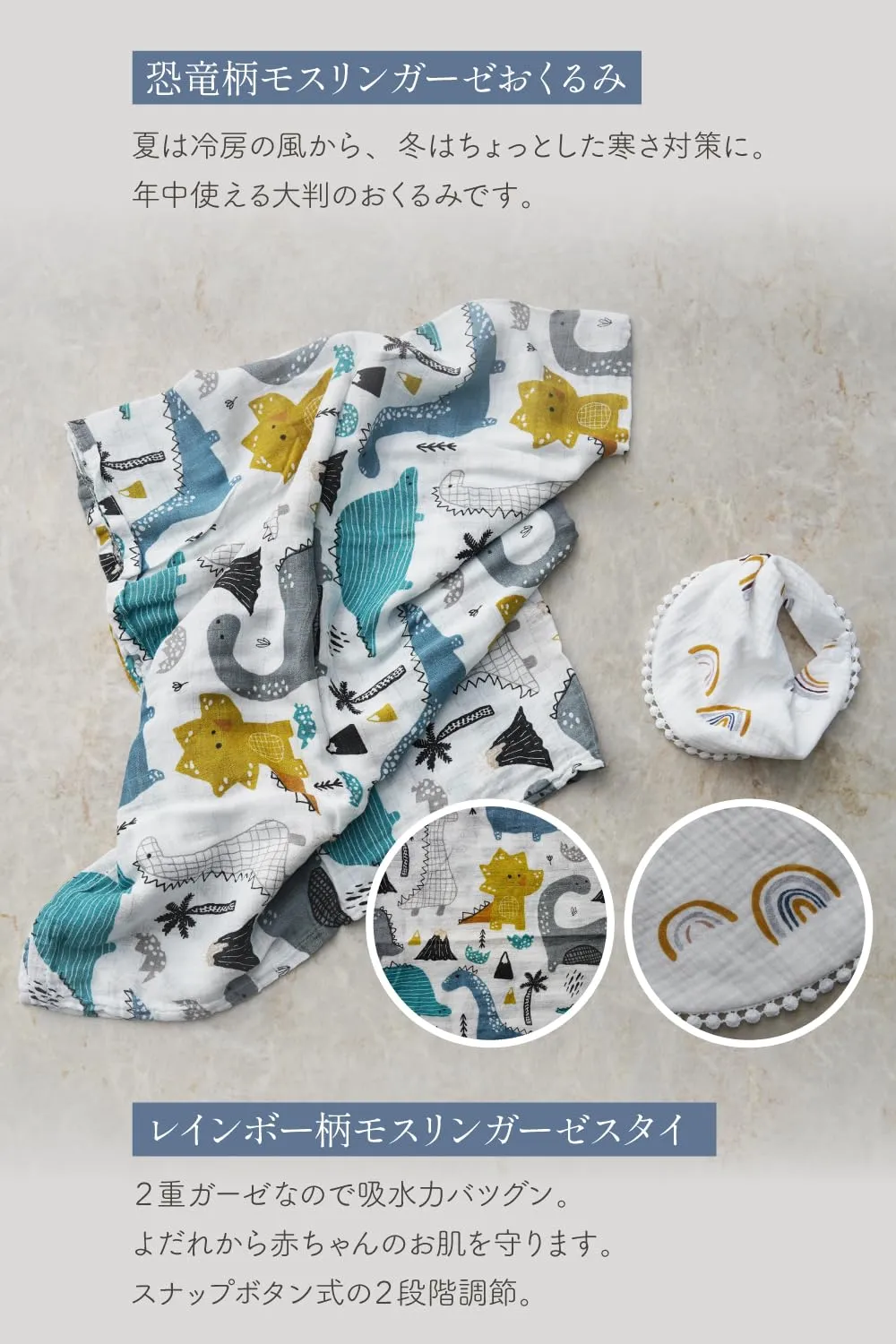 【モスリンガーゼおくるみ】大判サイズ(110×120cm)でお昼寝や冷房対策、スワドルにも使える万能アイテム